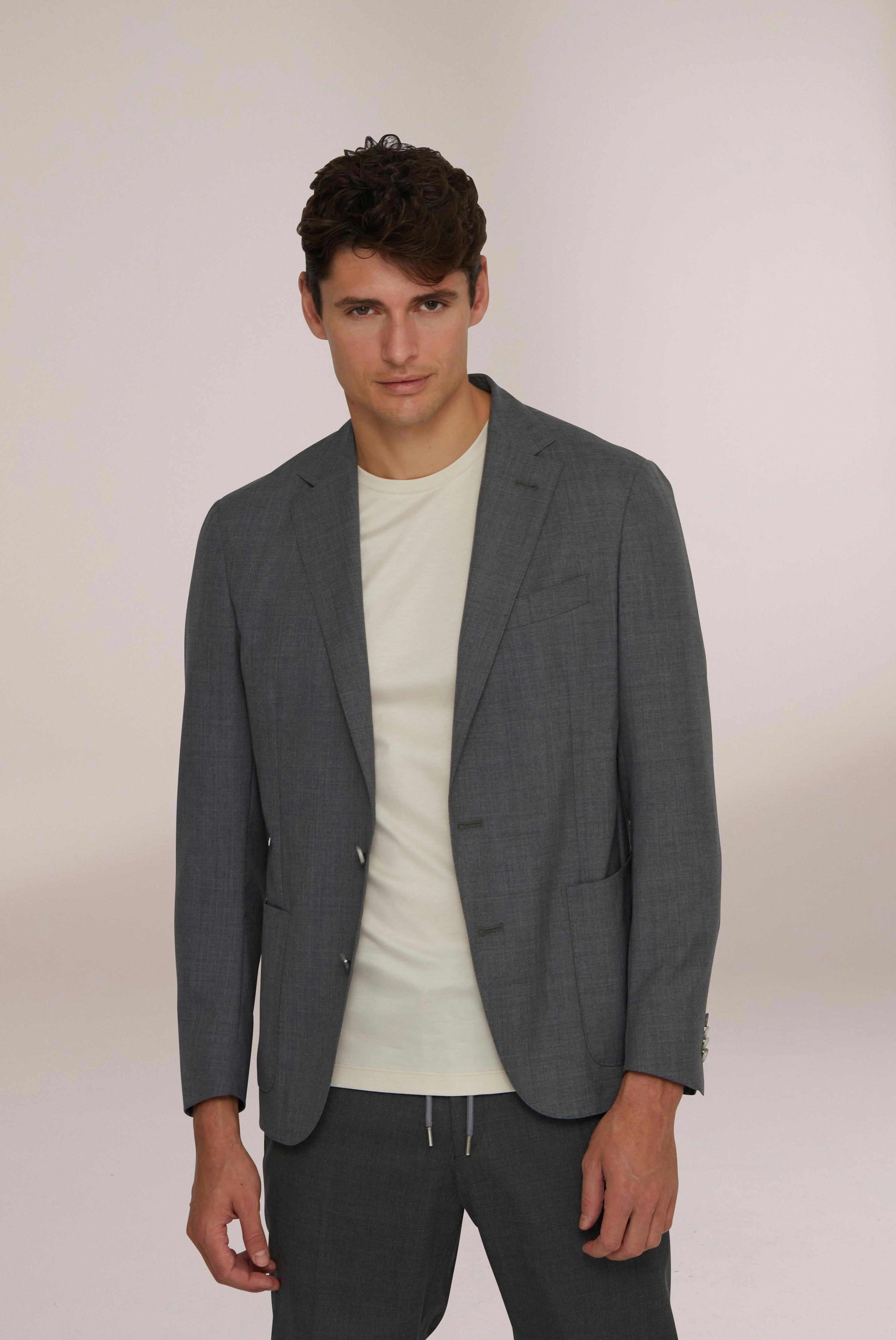 Entdecken Sie unser neues federleichtes graues Sakko aus Wolle.