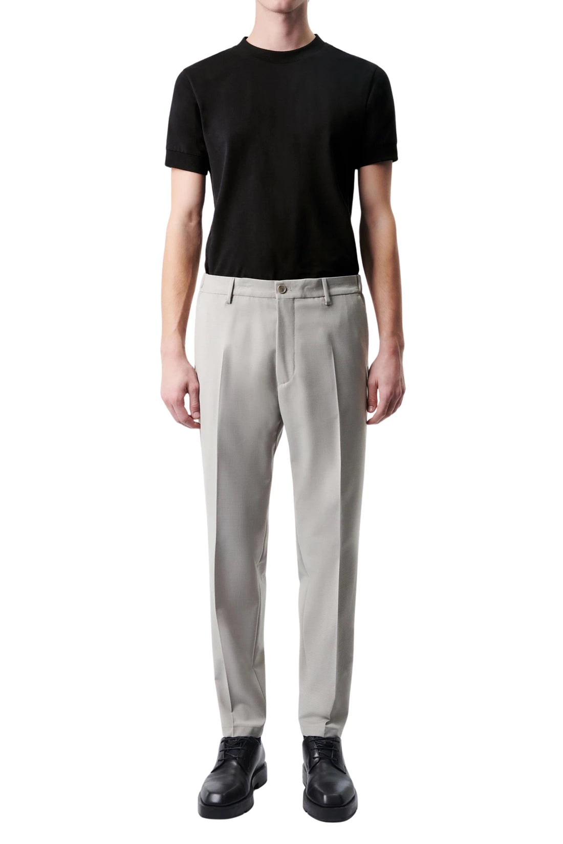 AJEND_SK is a classic trouser with a crease and a narrow tapered leg. An elastic insert at the side of the waistband gives it a sporty touch and thus offers a high degree of comfort. AJEND_SK is made from Tec-Wool with a subtle tonal houndstooth pattern.