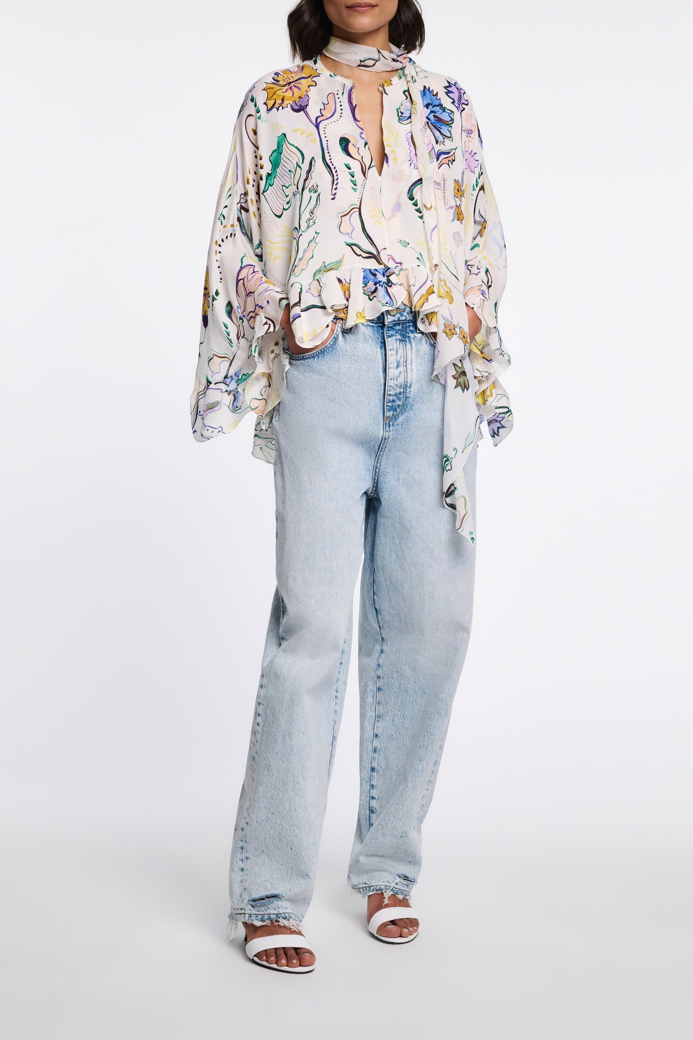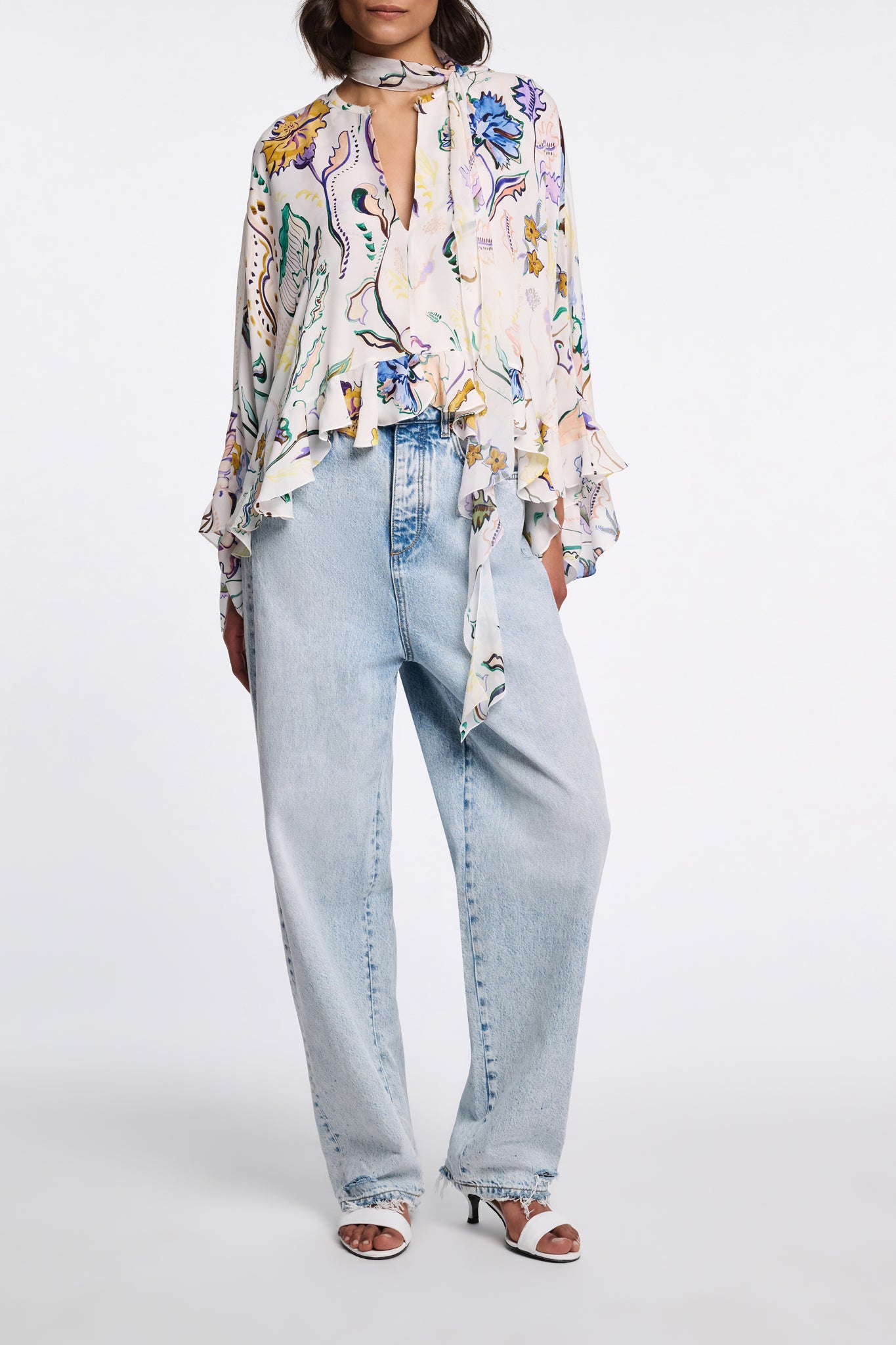 Die Jeans hat einen coolen, baggy Fit. Der klassische 5-Pocket-Style wird durch distressed Details und einen Signature-Button vorne ergänzt.
