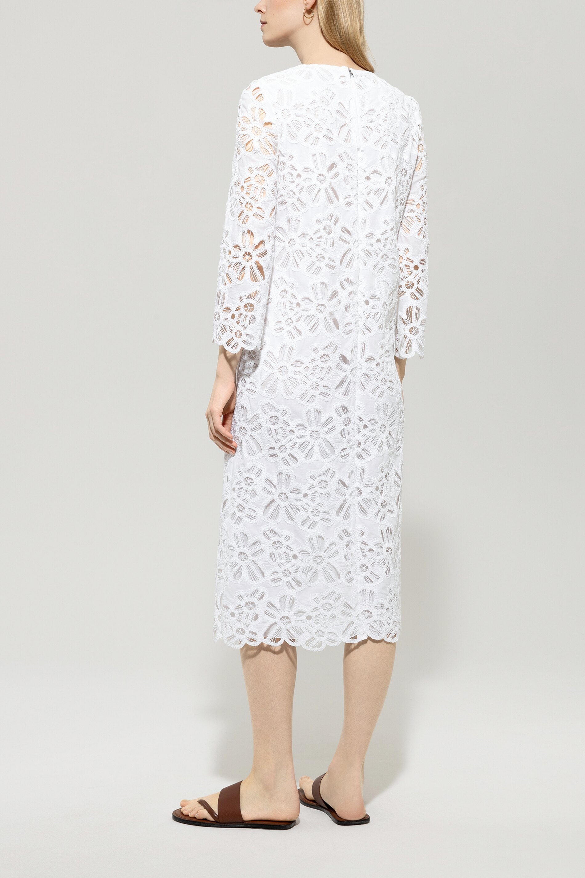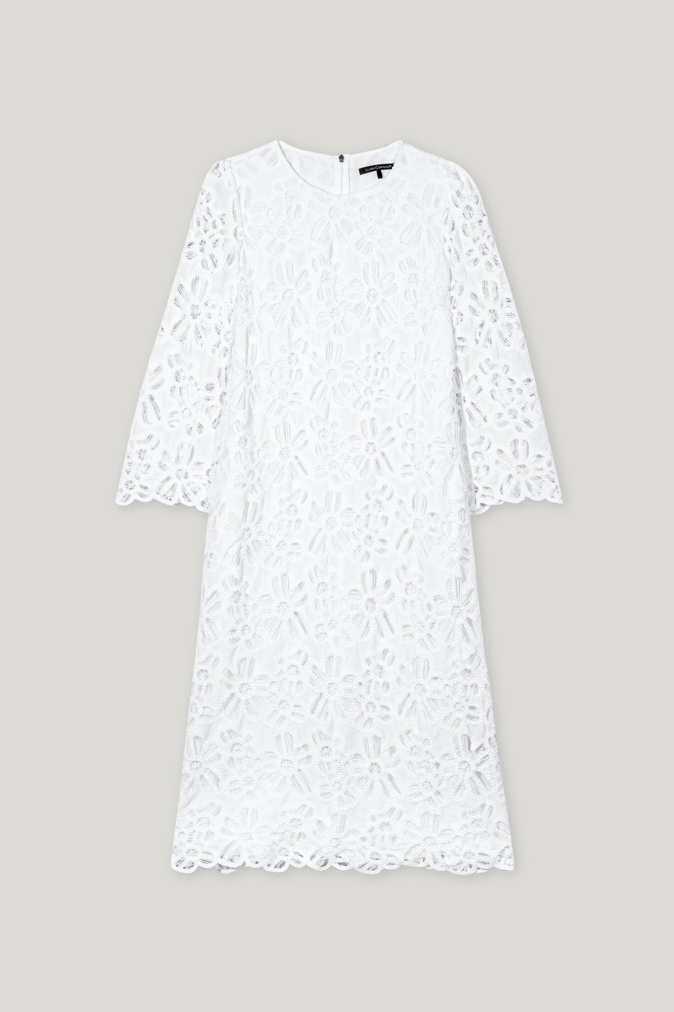 Midikleid mit aufwendig gearbeiteter Crochetspitze aus leichter Baumwolle. Der weite, schlichte Schnitt wird durch einen Rundhalsausschnitt und halblange Ärmel abgerundet.