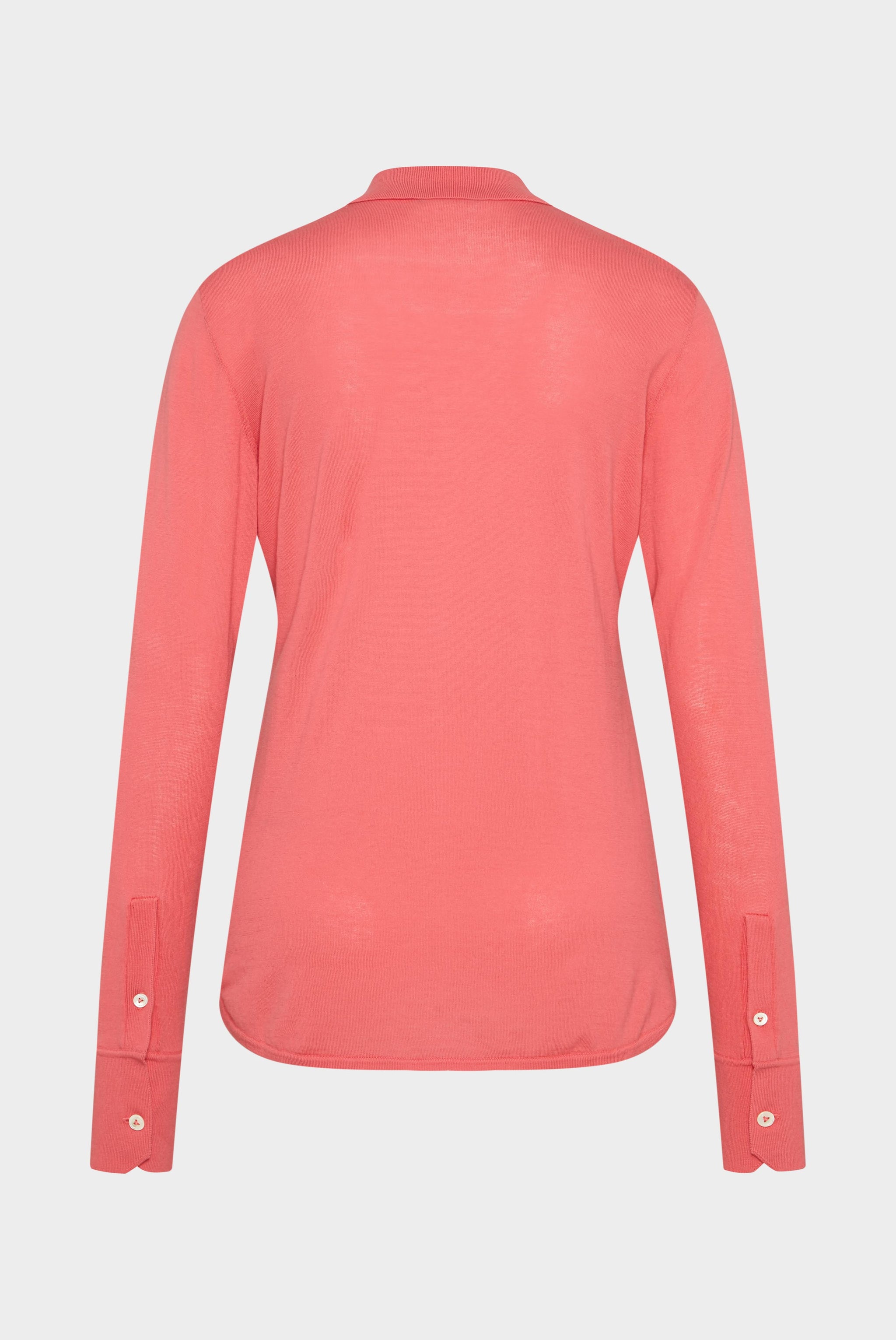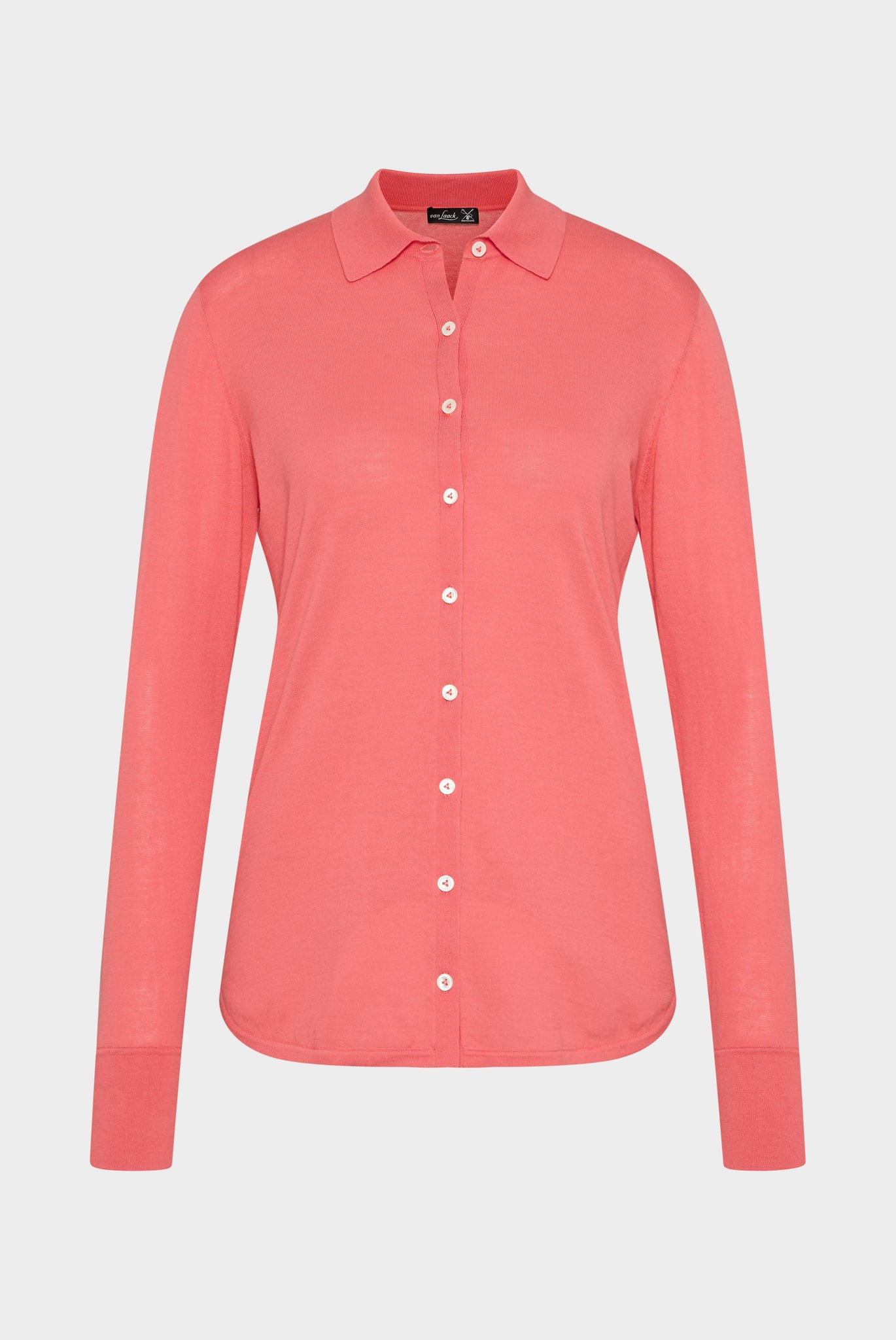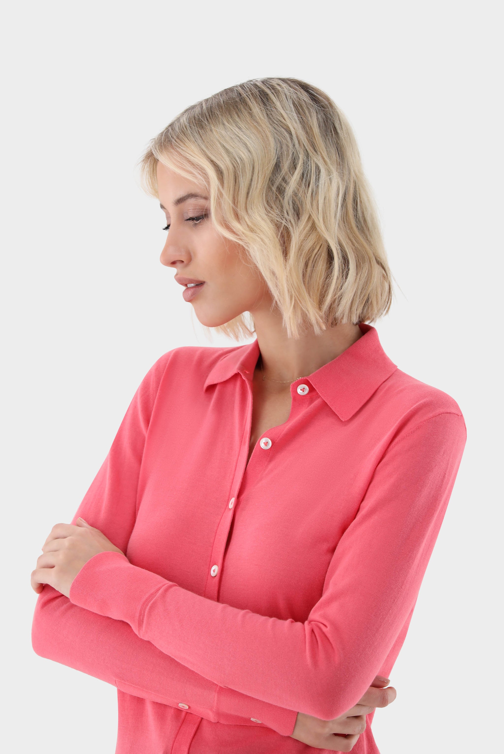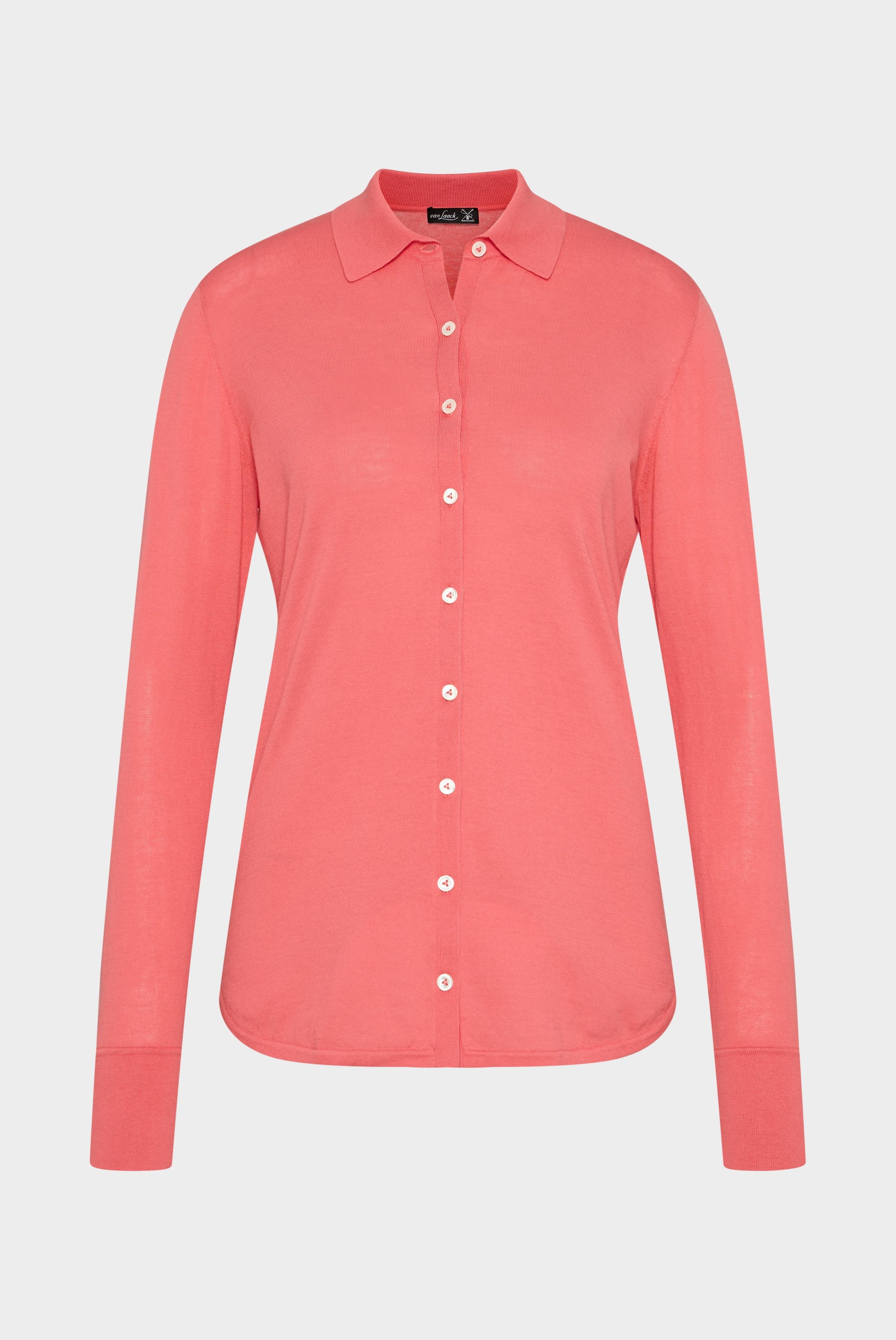 Das Langarm-Strickshirt besteht aus hochwertiger Baumwolle und bietet optimalen Tragekomfort. Perfekt für vielseitige Anlässe dank seiner figurbetonten Passform und seiner dezenten Optik. Die langen Ärmel bieten saisonale Flexibilität. Zusätzlich verfügt es über einen klassischen Hemdblusenkragen und eine offene Knopfleiste.