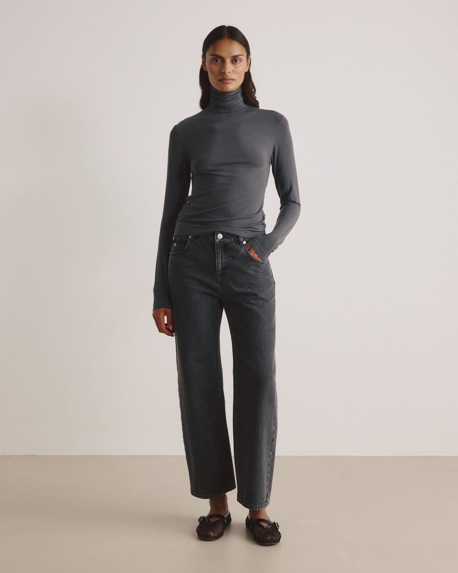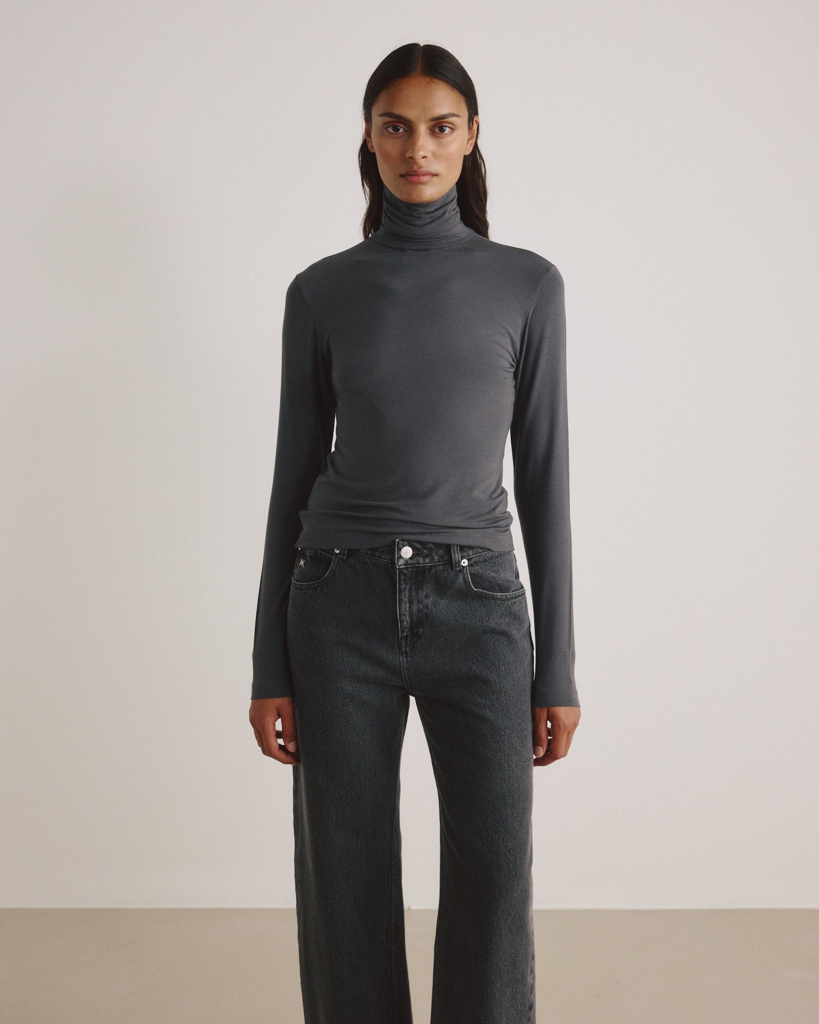 - eng anliegendes Jersey Longsleeve mit Rollkragen