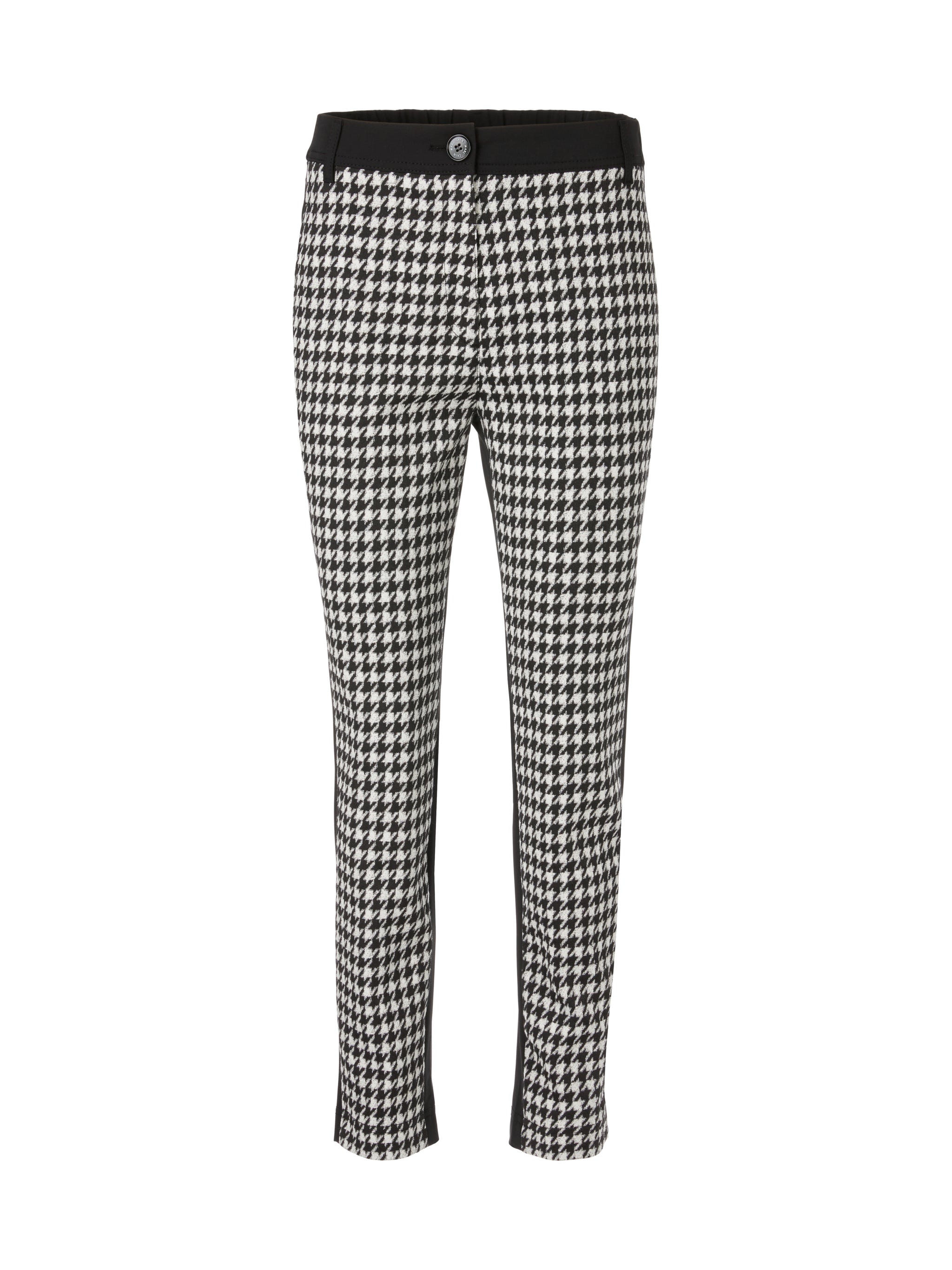 Tragekomfort und ein auffälliges Dessin kennzeichnen die Hose SLIVEN mit High-Waist-Bund. Ins Auge fällt vor allem das Vorderteil mit seinem Chickcheck-Print. Das rückwärtige Teil kommt in Unifarben und besitzt Leistentaschen am Gesäß. Die Beine sind knöchellang geschnitten. Dank elastischem Material-Mix ist die Slim-Fit-Hose sehr bequem.