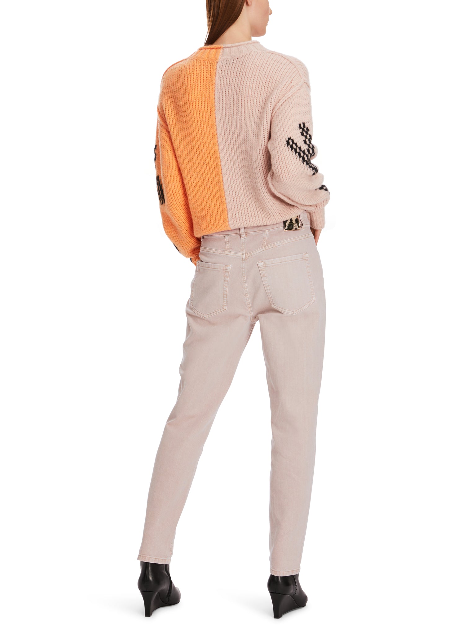 Modell RIAD ist aus Bio-Baumwolle und trägt das Nachhaltigkeitslabel "Rethink Together". Charakteristisch ist die individuelle Taschenlösung. Hier interpretiert in Denimjeans mit High Waist und Relaxed Fit. Das Bein ist verkürzt und verläuft konisch zum Saum hin.