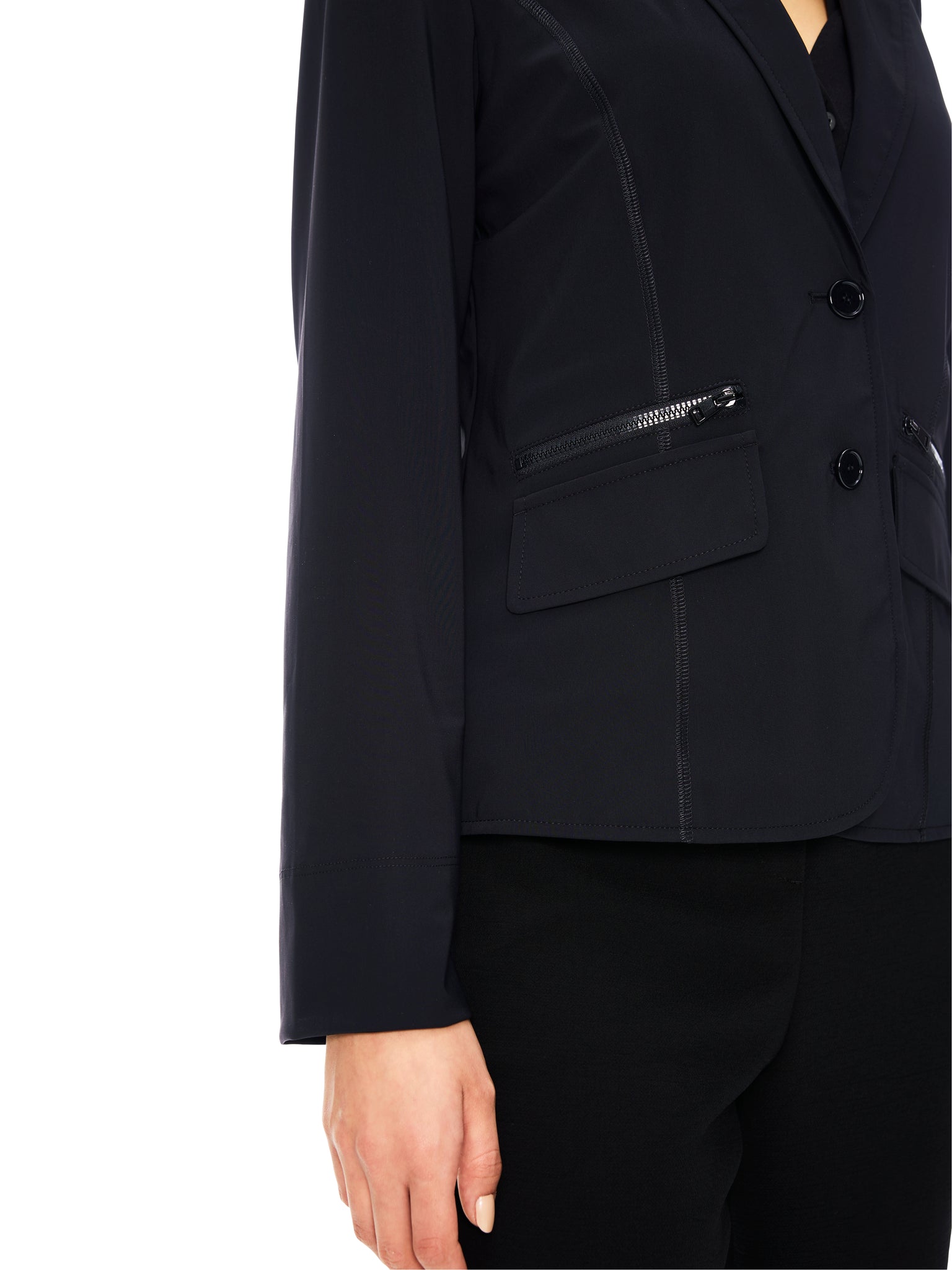 Der taillierte Blazer ist aus einer bequemem Stretchqualität gefertigt und bietet daher höchsten Tragekomfort. Das sportive Modell lässt sich mit zwei Knöpfen schließen und kommt mit coolen Reißverschluss-Details. Der kleine Sports-Cube setzt einen besonderen Akzent.