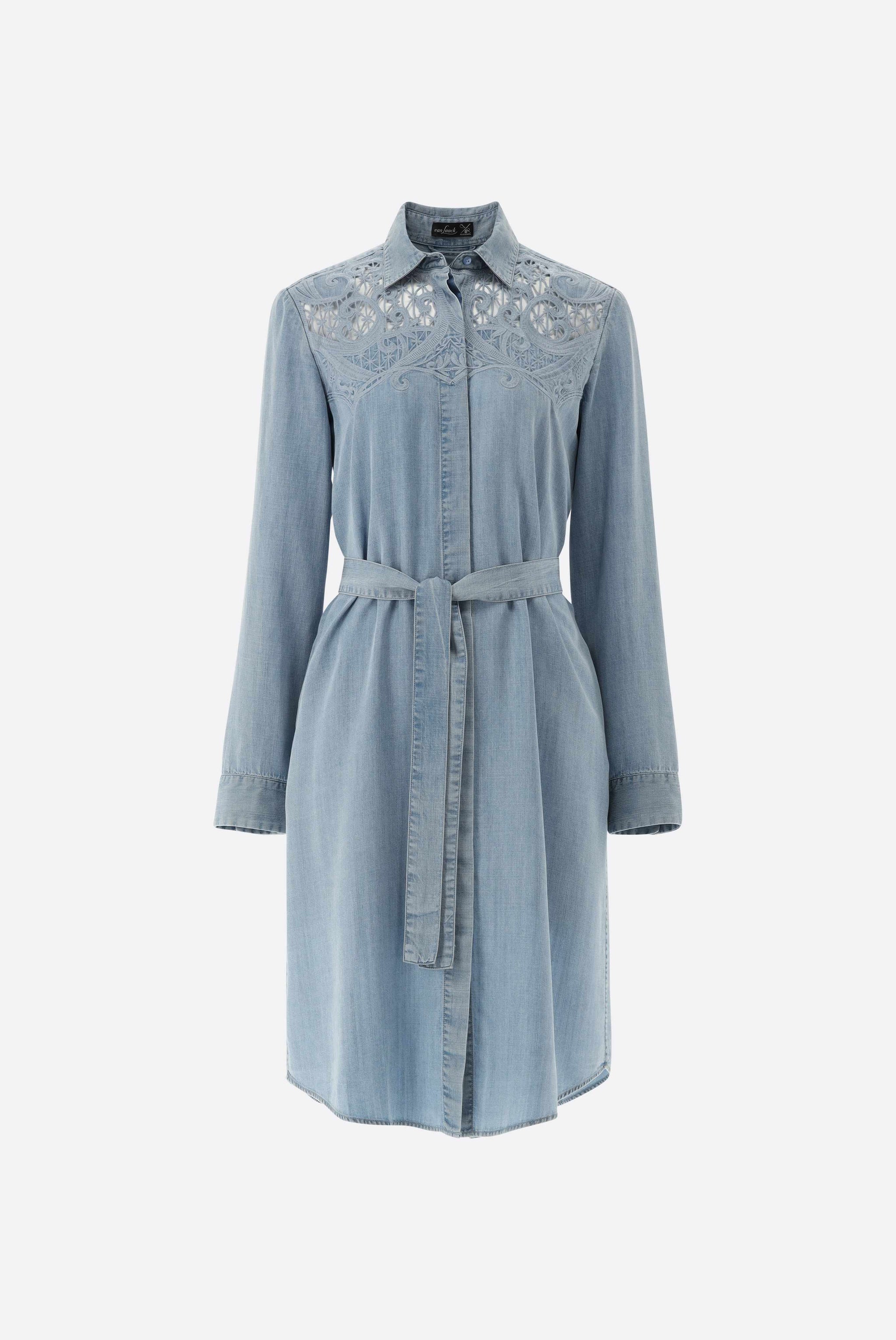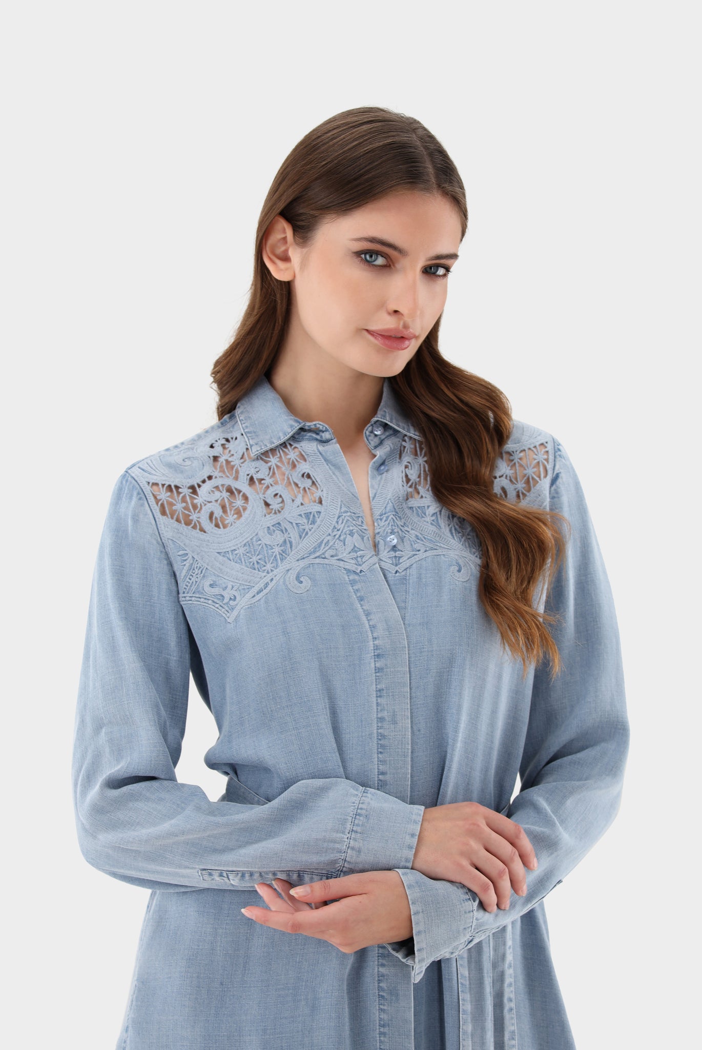 Hemdblusenkleid mit Spitzenausschnitten in Jeans-Optik