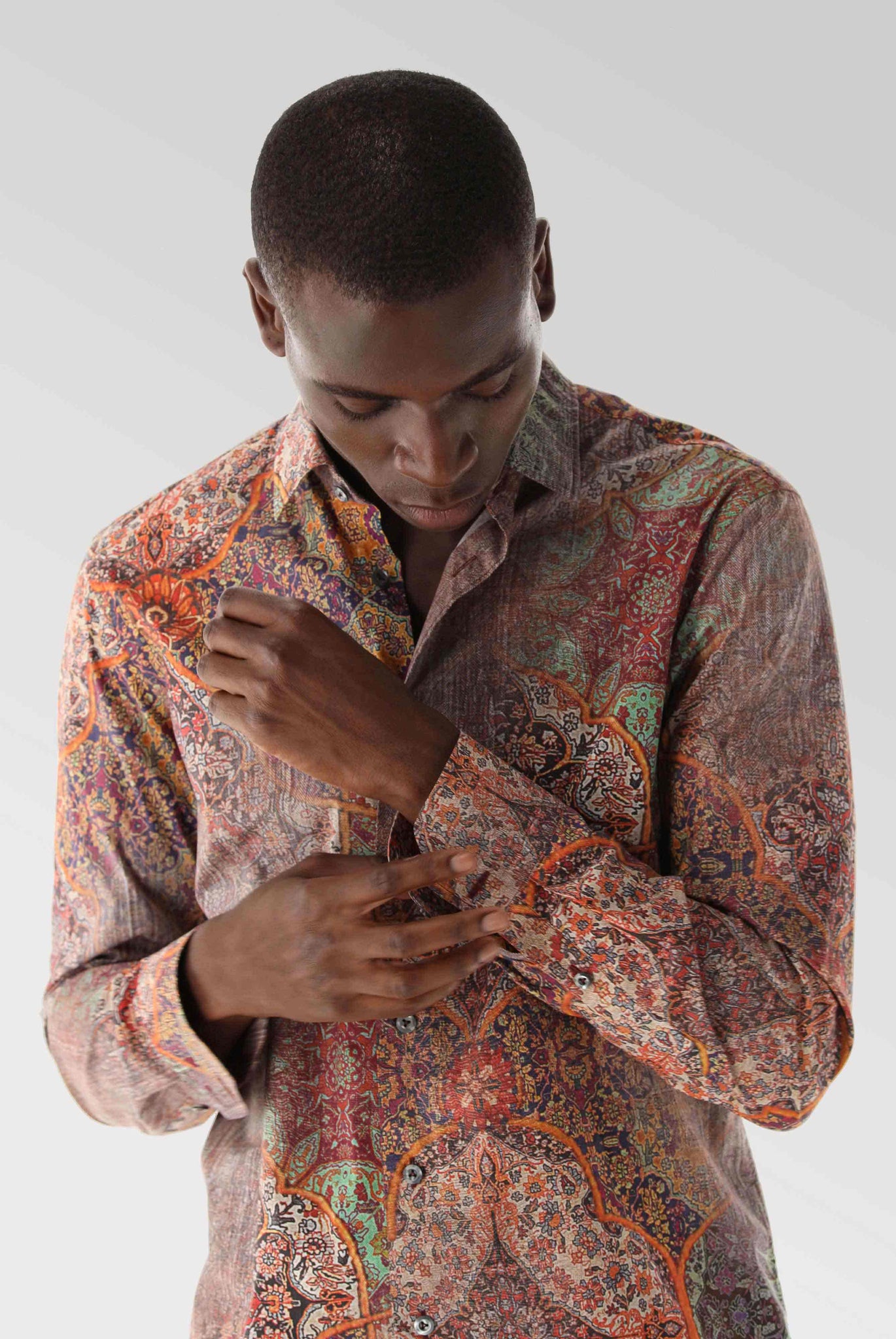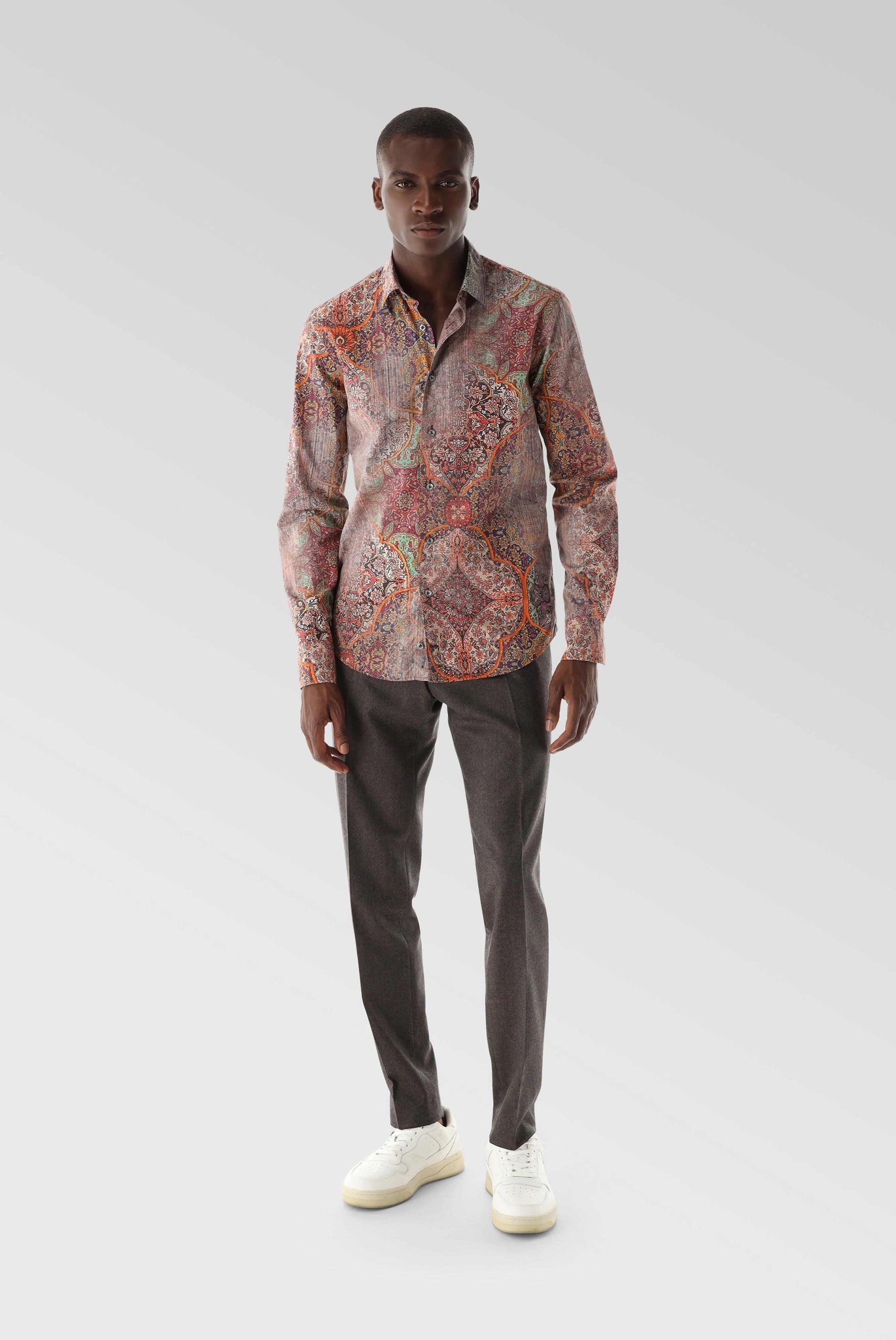 Popeline Hemd mit Vintage Druck Tailor Fit