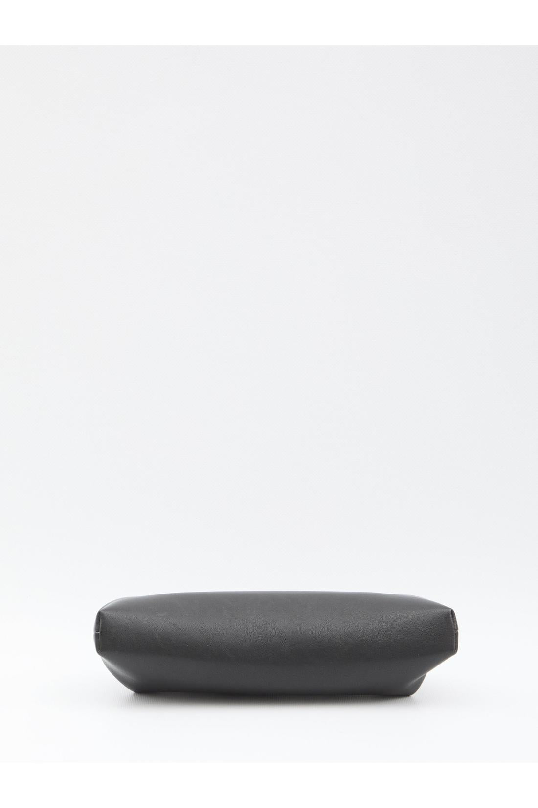 black leather clutch. features a removable chain strap, square clasp closure with jc logo, and a vintage-inspired silhouette. dustbag included.