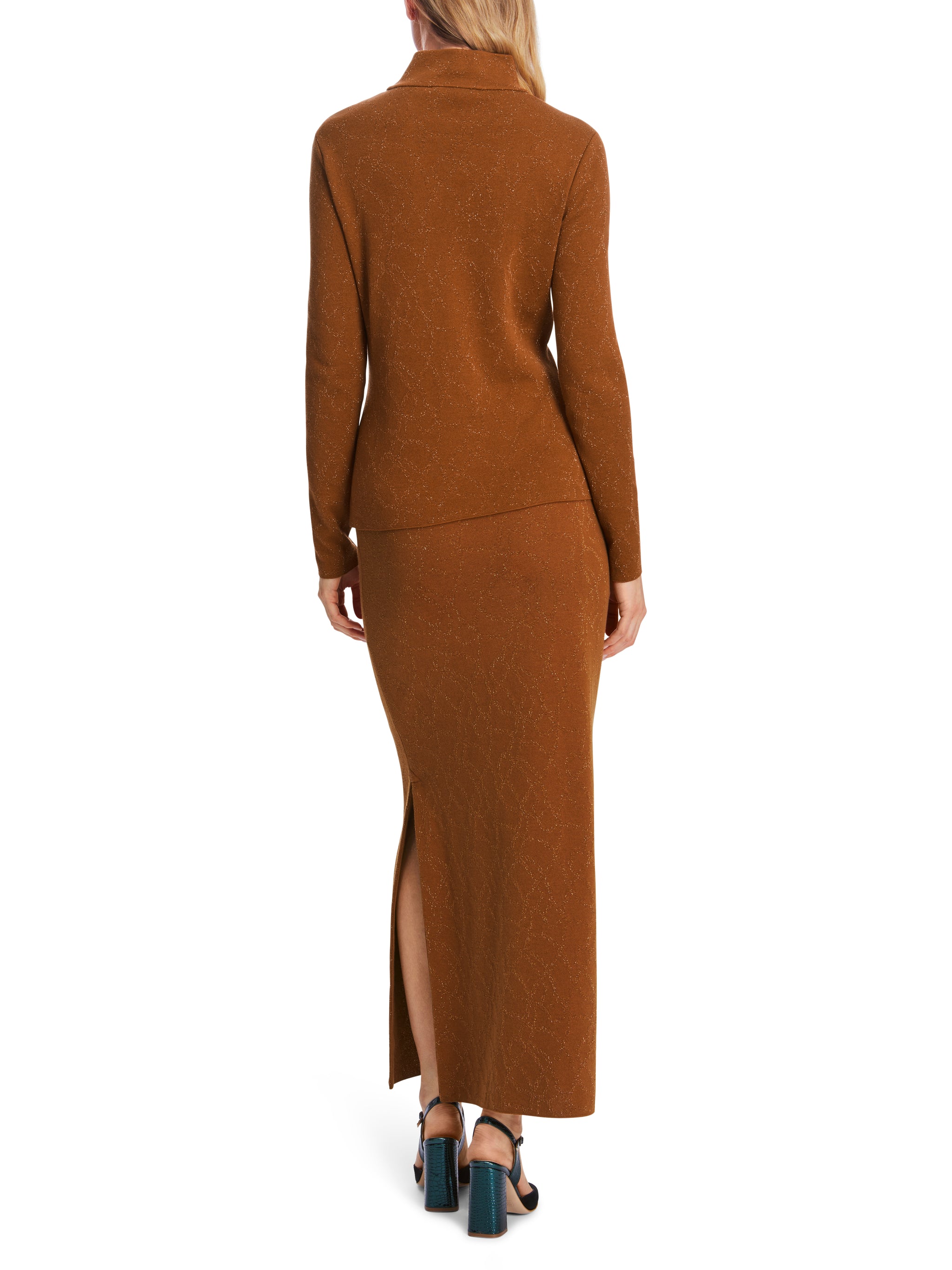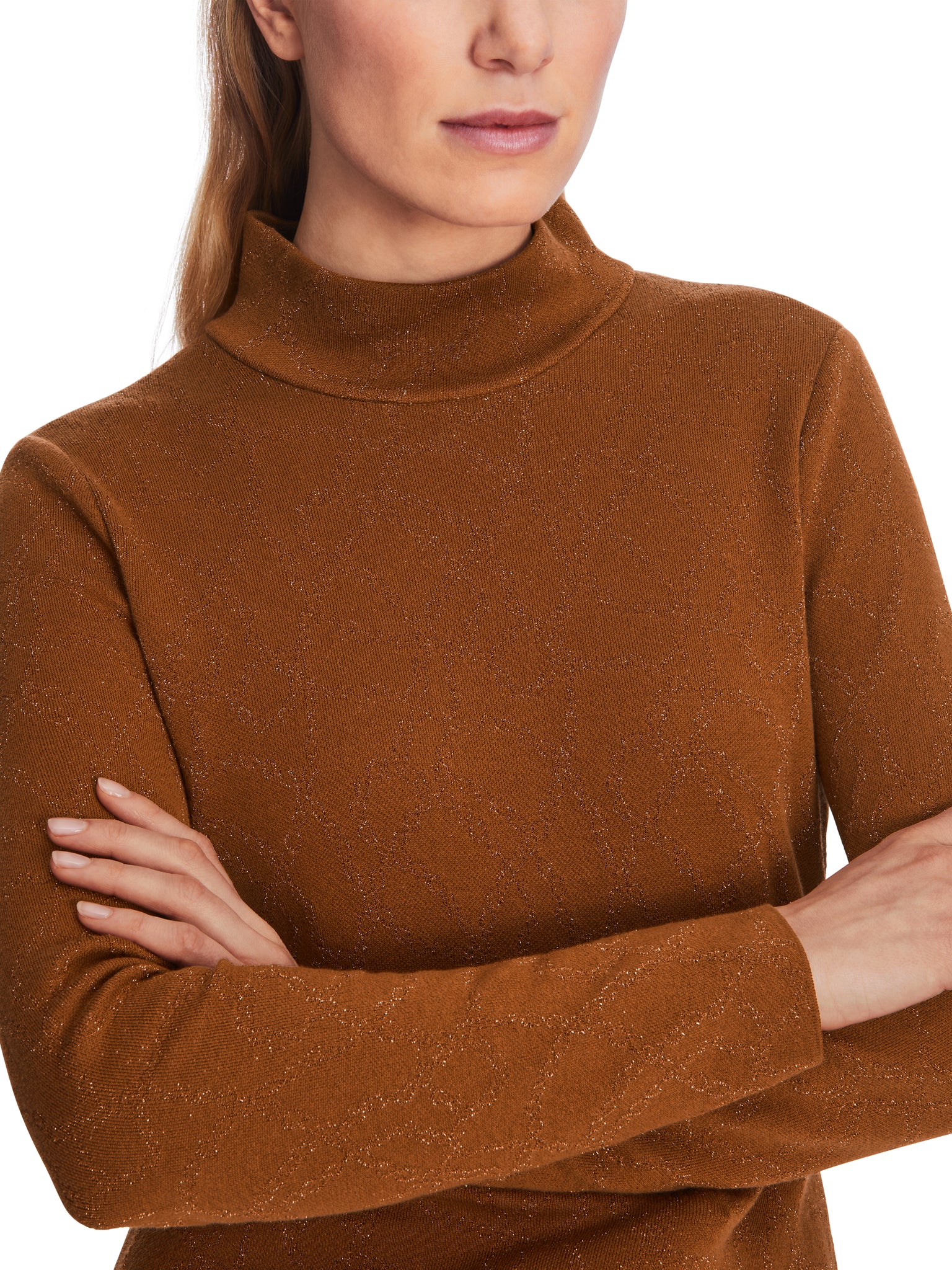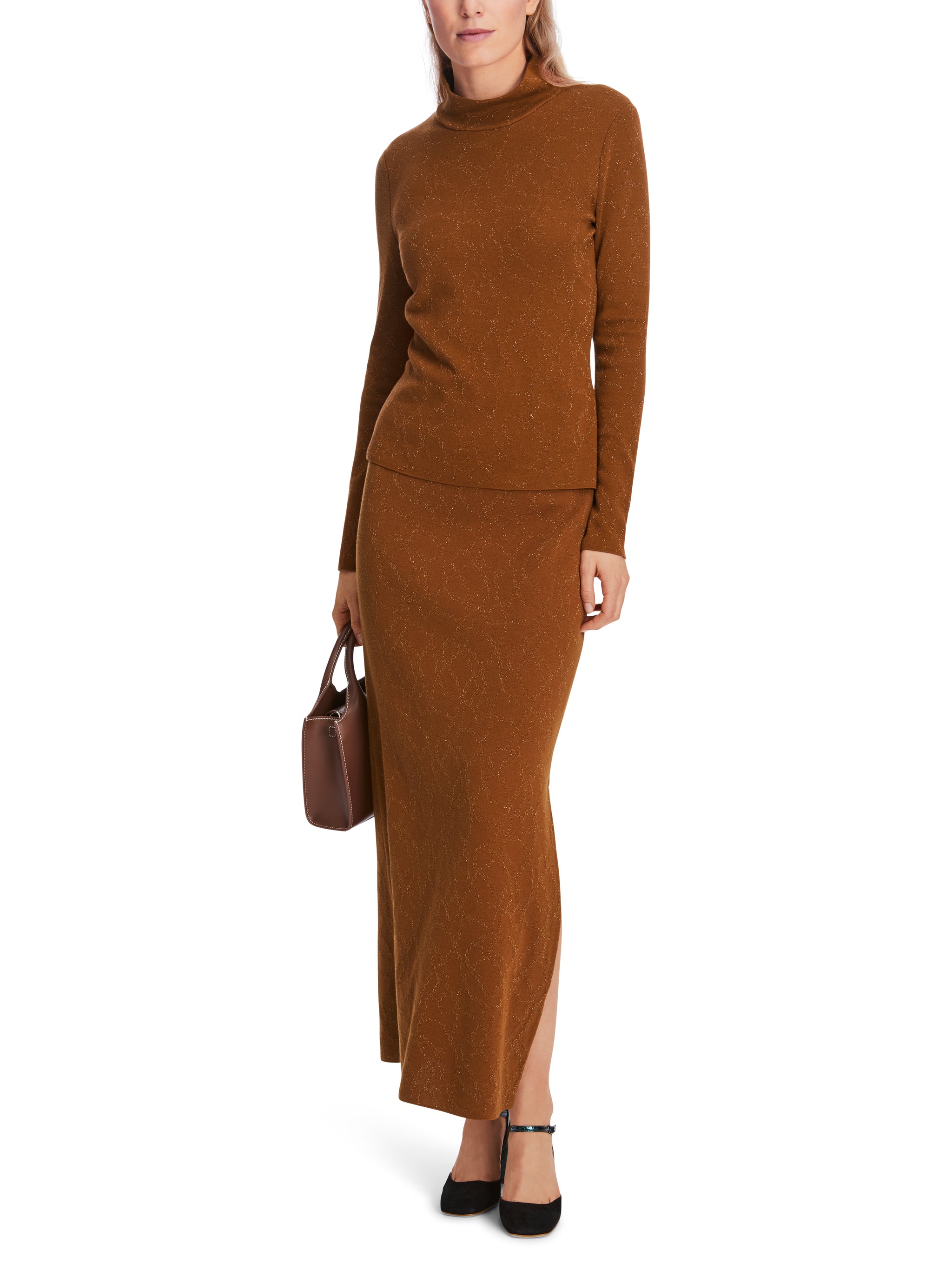 Versehen mit einem feinen Schimmer aus Lurex-Garn, ist dieser Sweater aus dem Nachhaltigkeitslabel "Rethink Together" das richtige Basic für festliche Anlässe. Er präsentiert eine figurnahe Silhouette mit Rollkragen und langen Ärmeln. Der Sweater wird aus einer Materialmischung mit Baumwolle und Viskose am Standort Deutschland gestrickt und auch veredelt. Die Weiterverarbeitung der einzelnen Teile erfolgt in europäischen Partnerbetrieben. Damit ist das Modell „Knitted in Germany“.