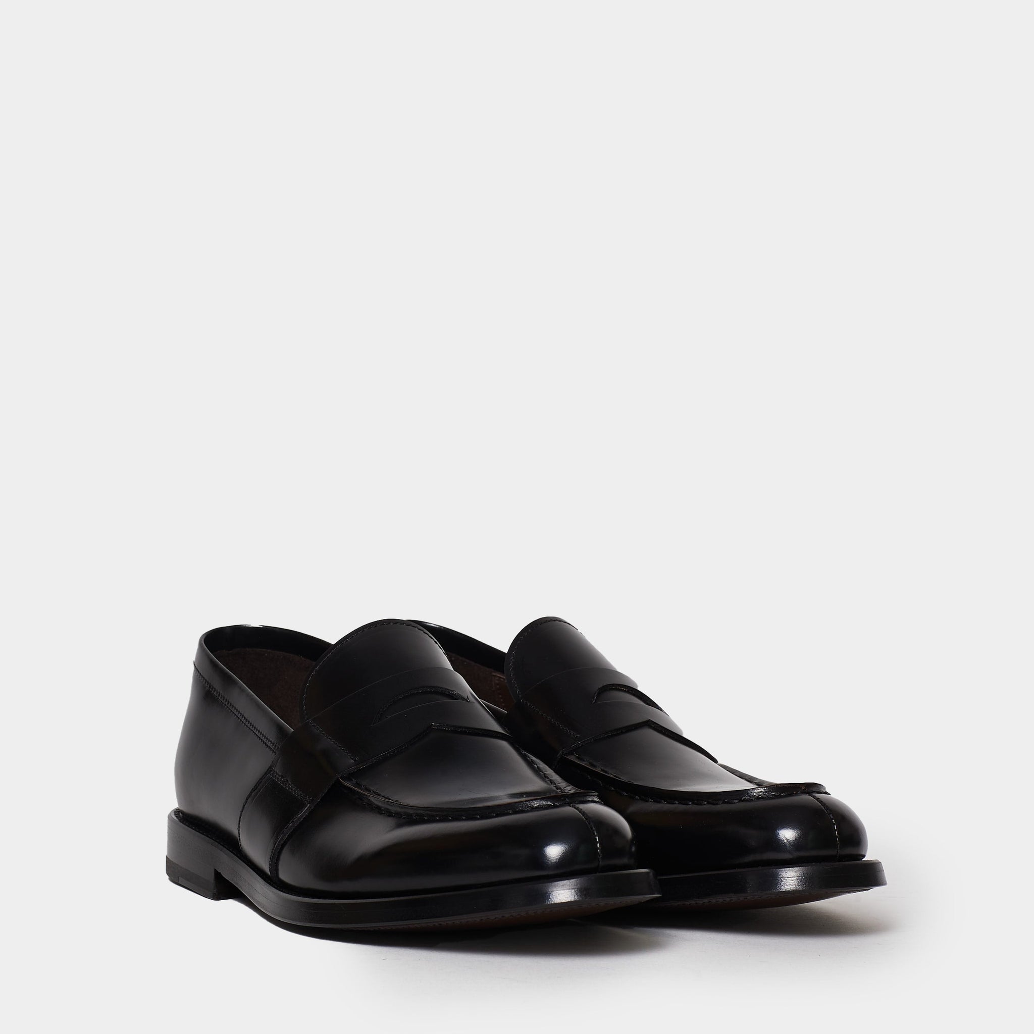 Step up your style game with these black full-grain leather moccasin shoes by GREEN GEORGE. Hand-stitched with Blake construction, these shoes offer a comfortable and regular fit. Perfect for any occasion, pair them with your favorite jeans or dress pants for a sophisticated look. Order now and elevate your wardrobe with this versatile and timeless classic shoe. (240 chars)