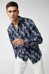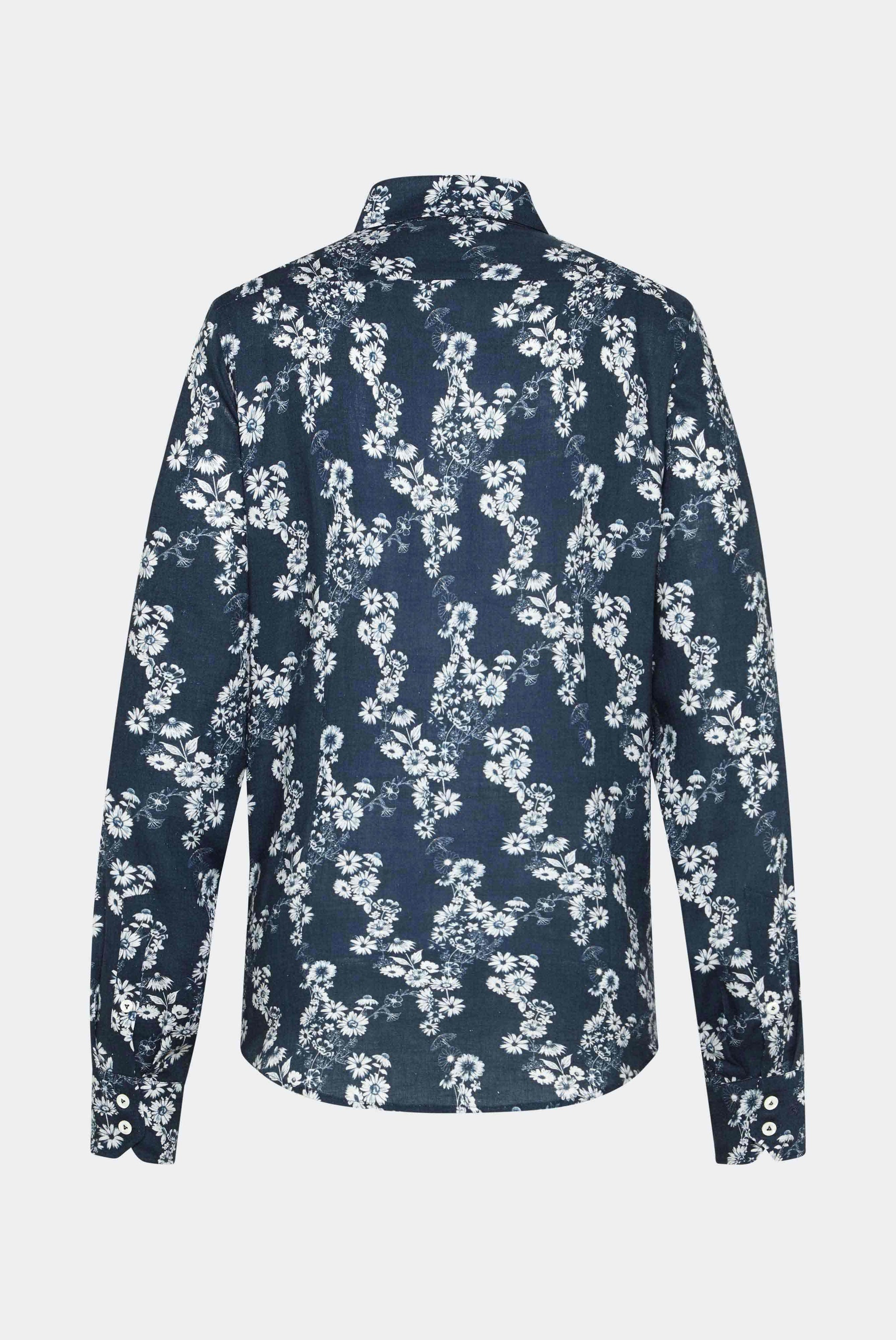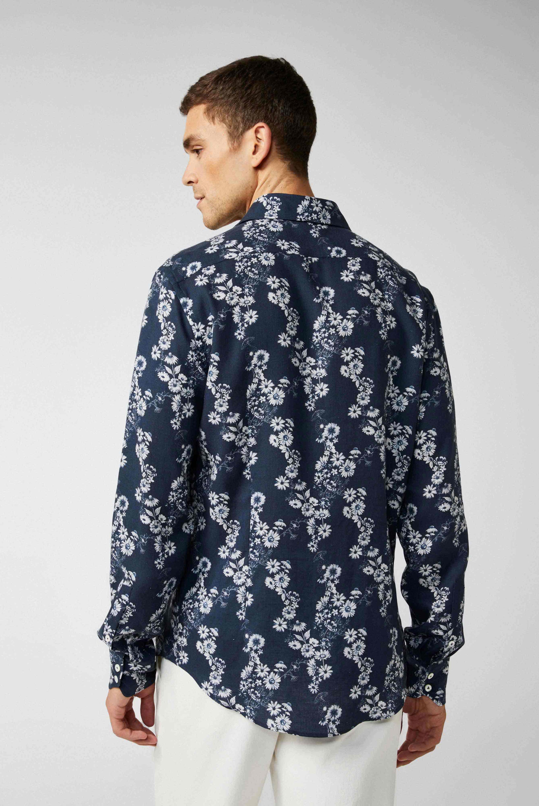 Hemd aus Leinenmischung mit Night Flower-Print Blau
