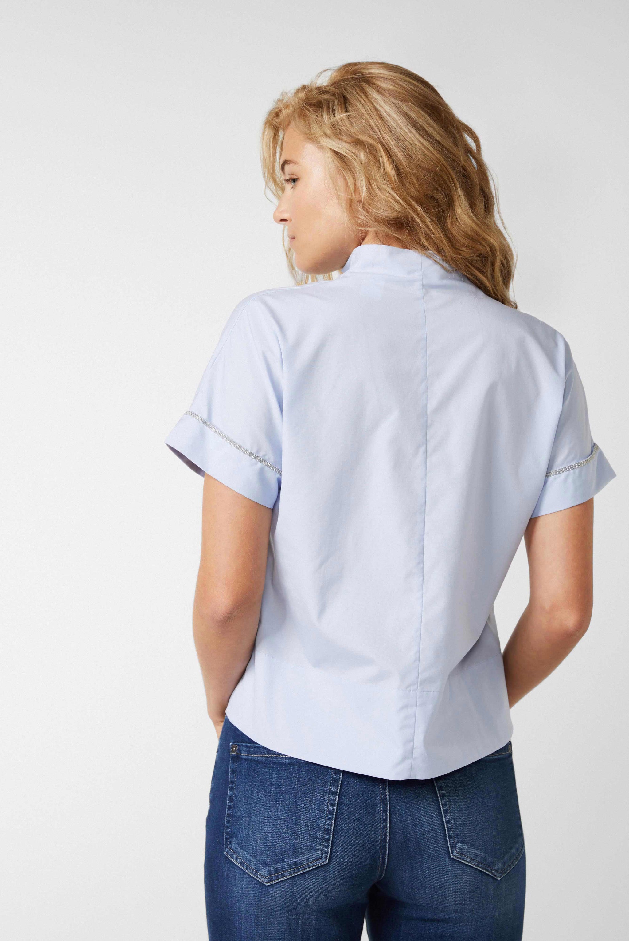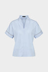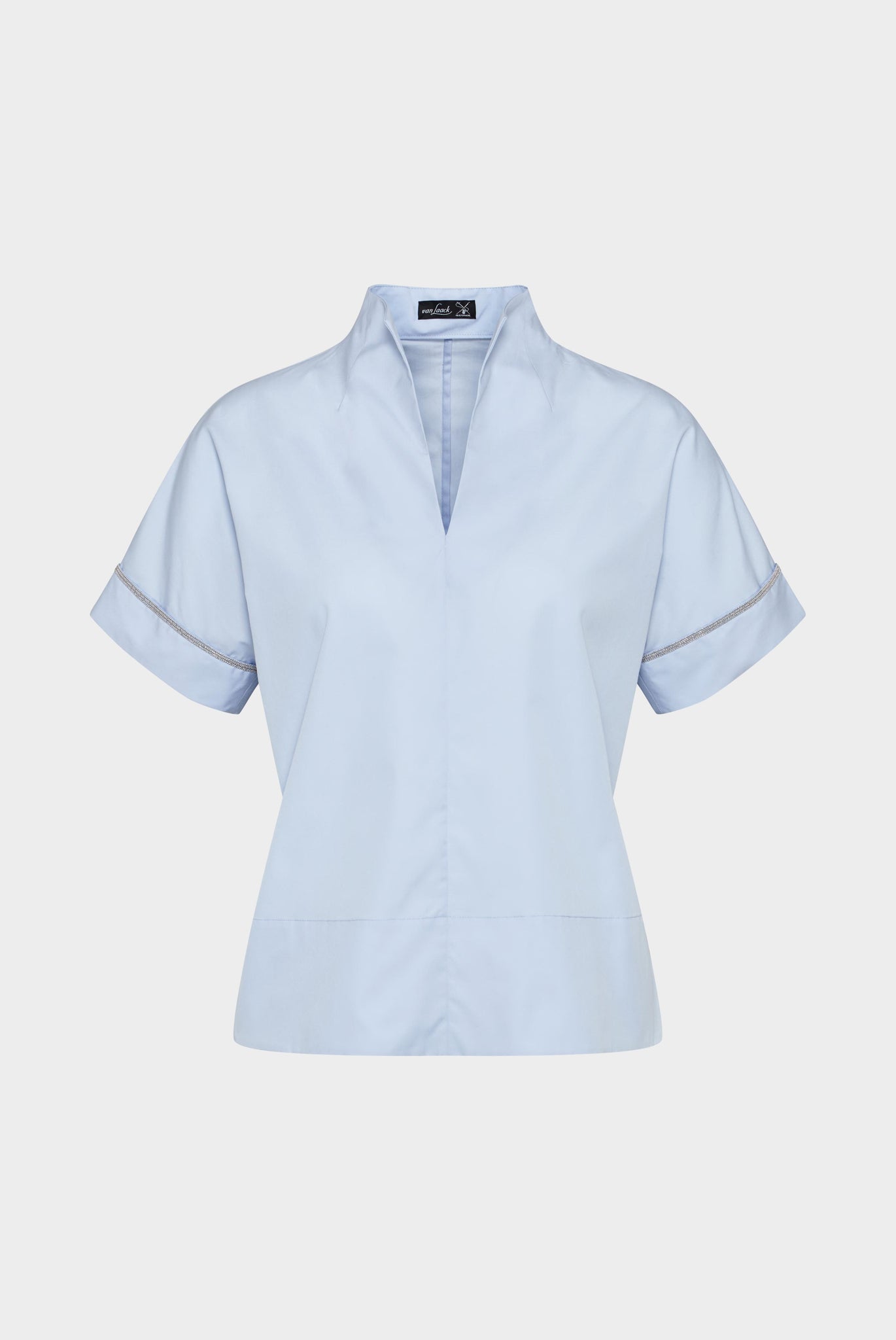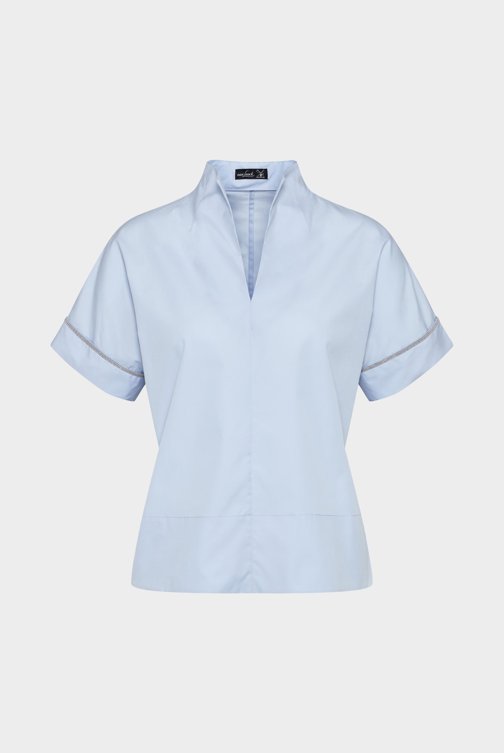Kelchkragen-Bluse mit Zierbanddetail aus Baumwollpopeline