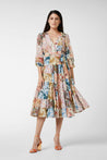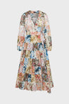 Midi-Wickelkleid mit Puffärmeln und Blumen-Patchwork-Druck