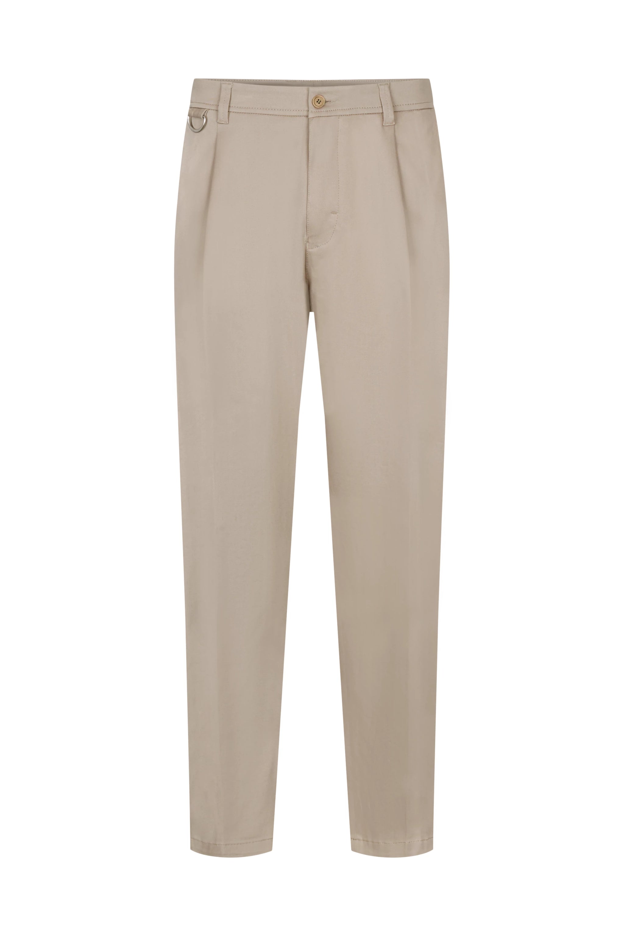 DEVYN is a tapered chino in a regular fit. The special details are the rear flap pockets and a fabric loop with D-ring on the right front part/waistband. The high-quality cotton gabardine with stretch content offers a comfortable fit thanks to its properties.