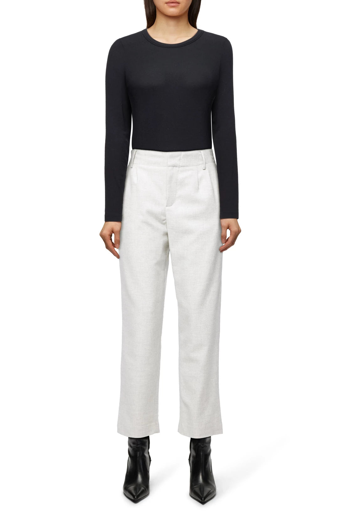 DISPATCH_O is a classic pleated trouser with a cropped leg. The side slit pockets are discreet and barely visible. An elasticated waistband is integrated at the back, giving them a comfortable fit. Discover the ultimate in comfort with our flannel fabric. Made from high-quality fibres, this fabric offers unparalleled softness and warmth. With its authentic flannel texture, it is perfect for cosy and stylish garments.