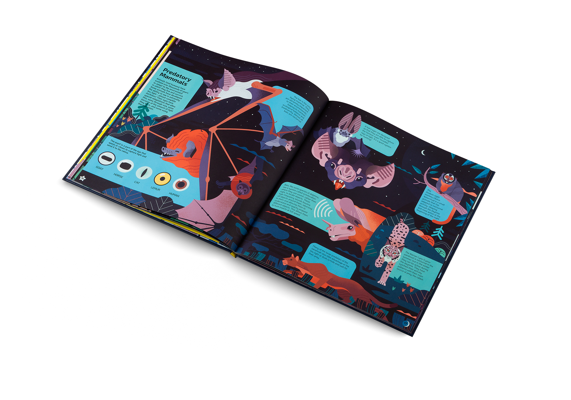 All about the animals and plants that live their life mostly in the dark: a children's book including fun facts and brilliant information with beautiful illustrations by renowned illustrator Ángel Svoboda.