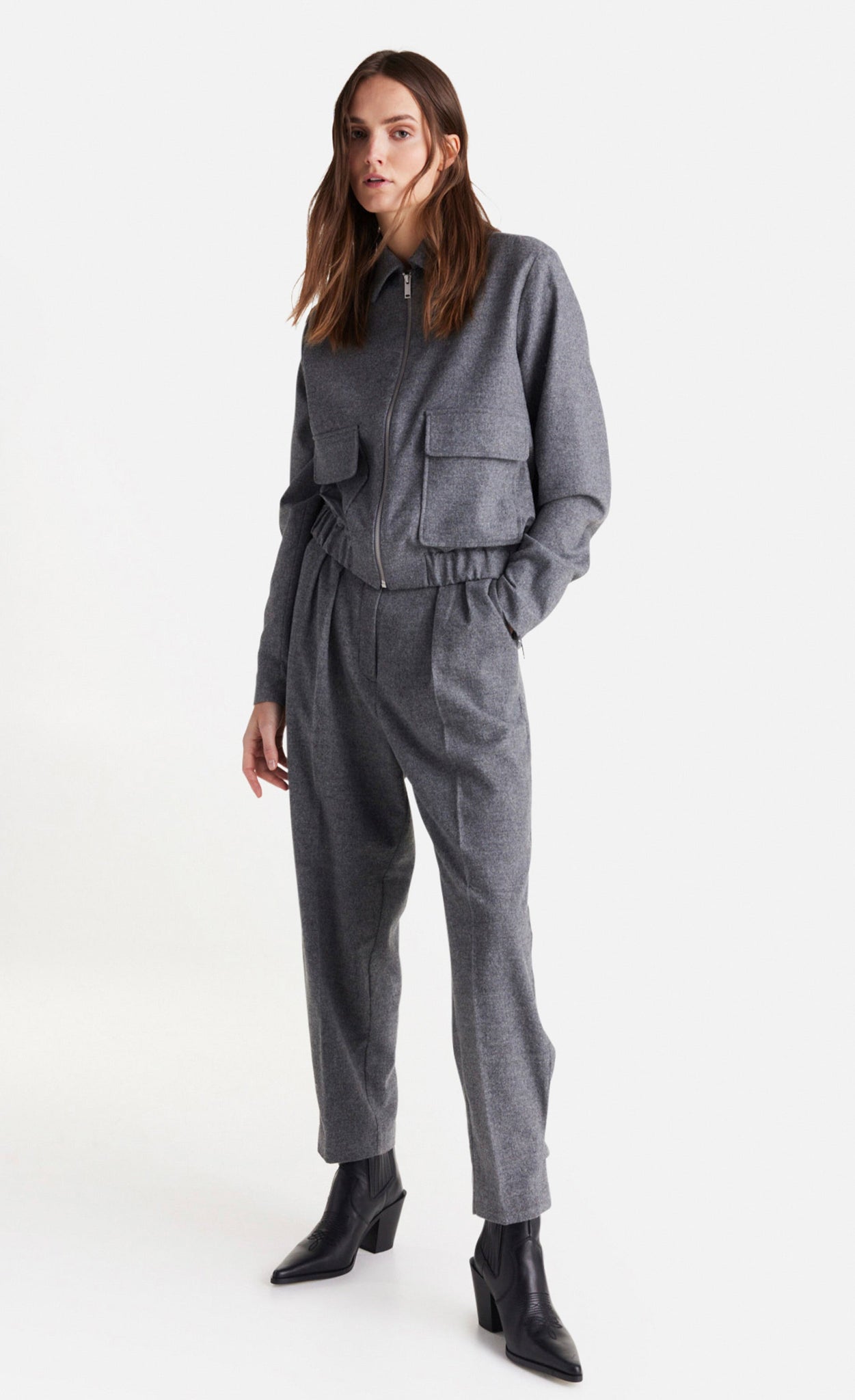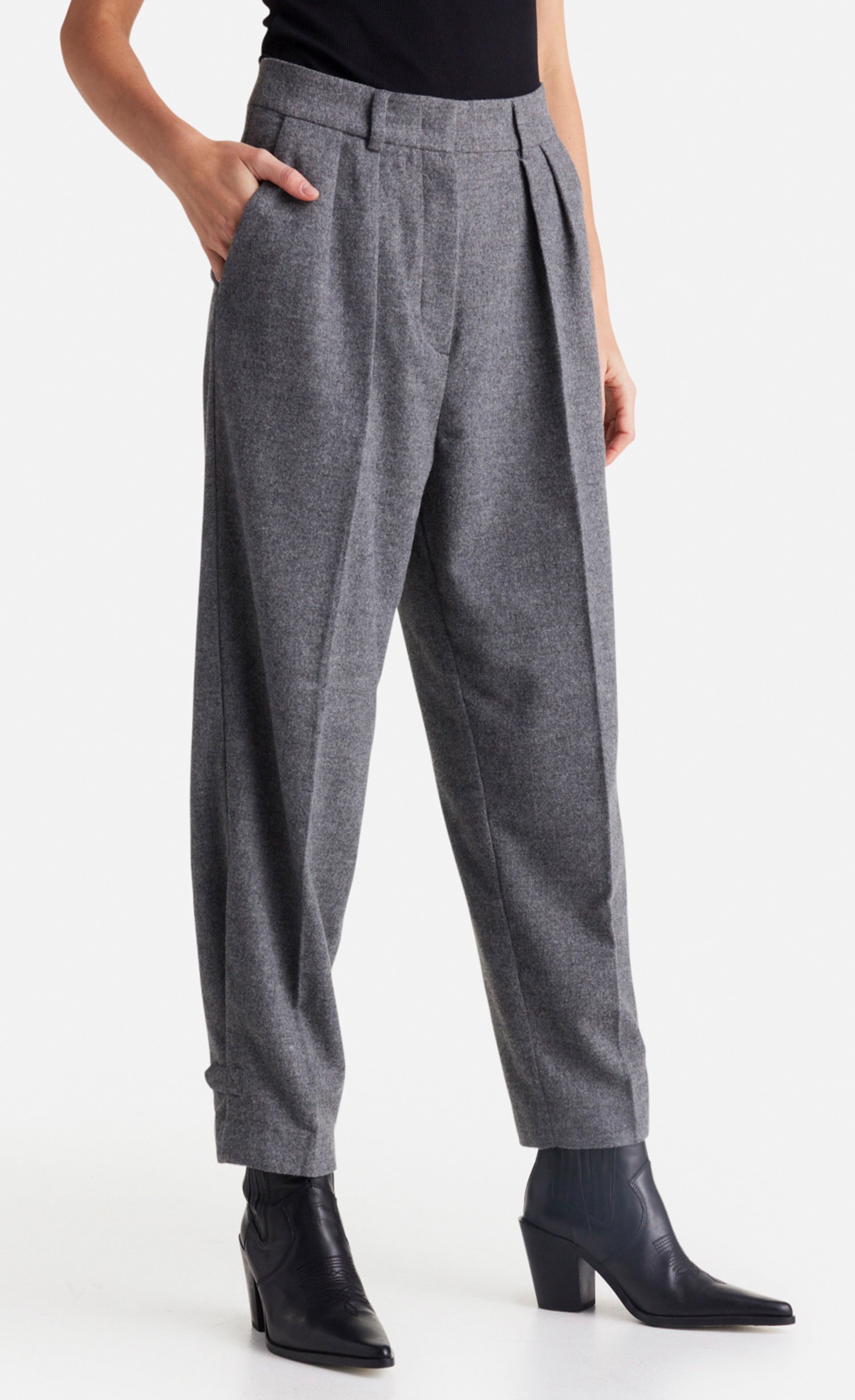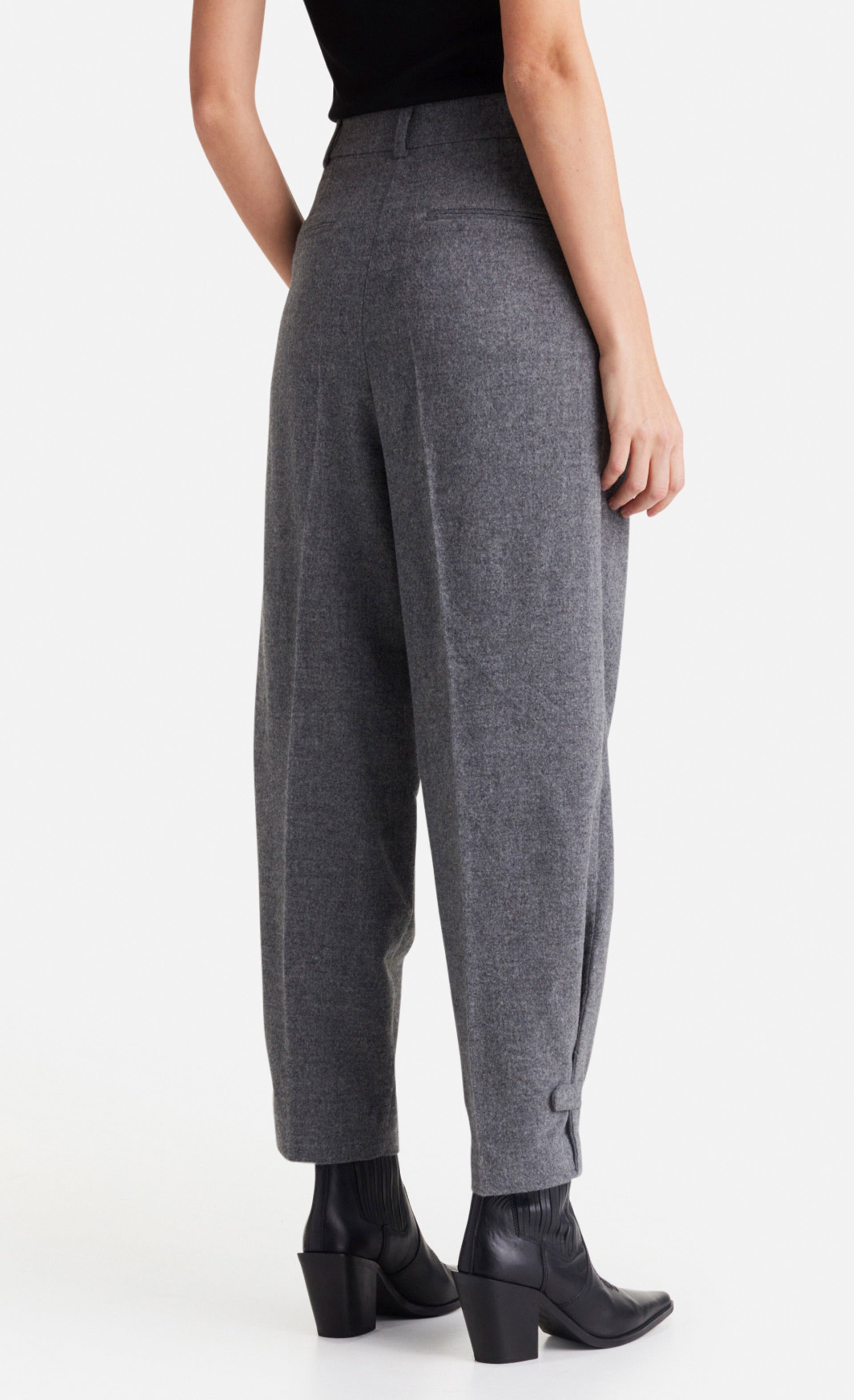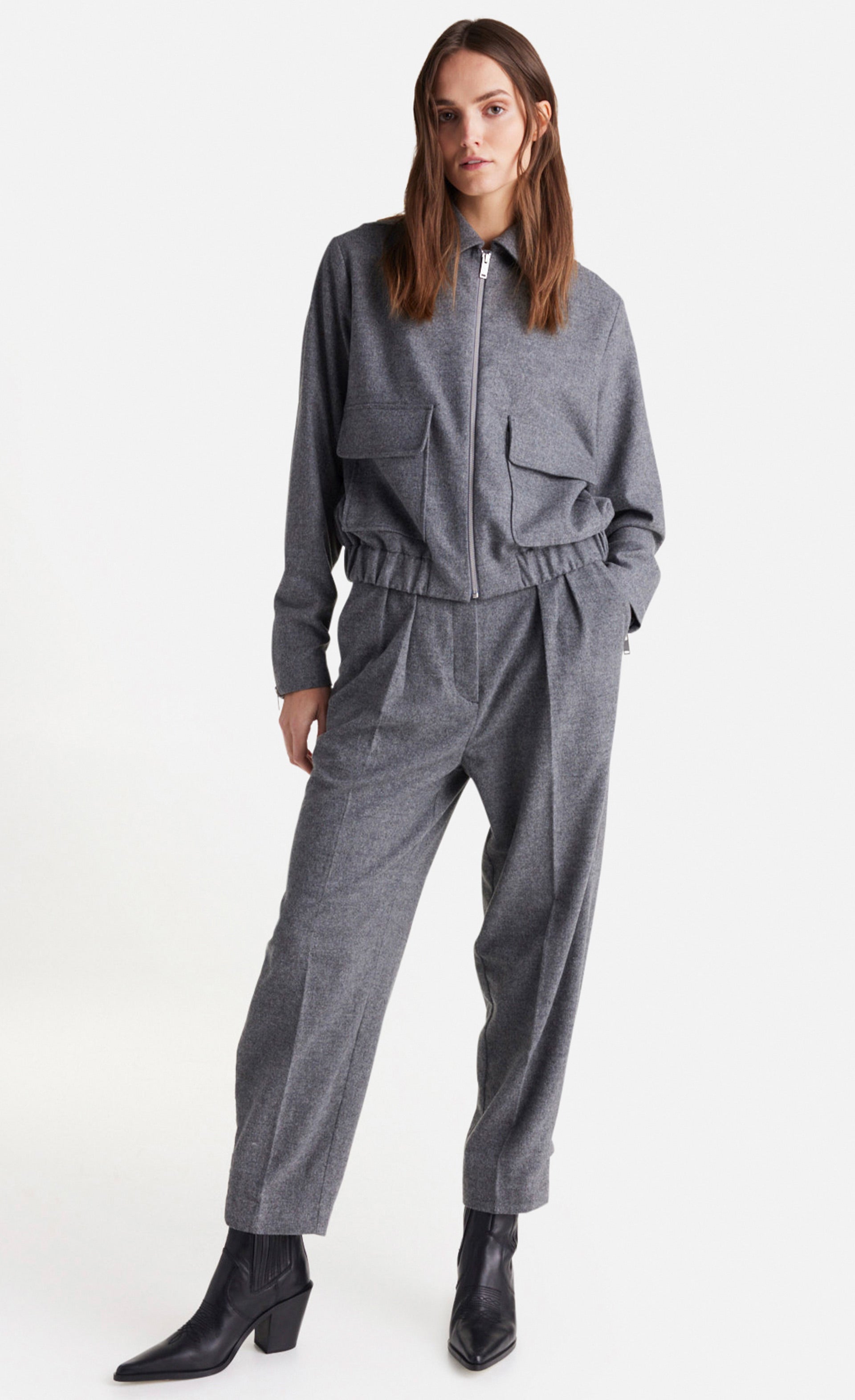 Stilvoll aber dennoch lässig ist diese Hose aus einem feinen Flanell in Mélangeoptik. Sie wurde im Stil einer klassischen Anzughose designt, mit doppelter Bundfalte und voll konfektioniertem Bund.