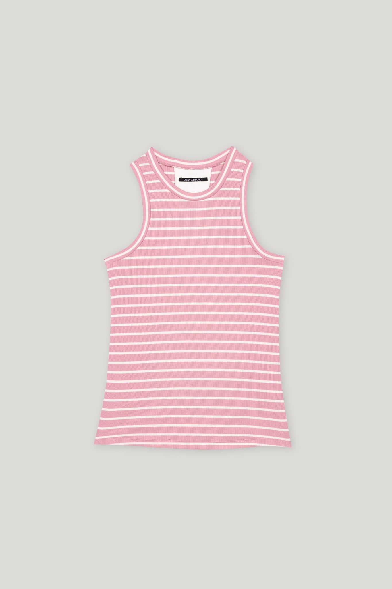 Tanktop mit einem Ringelmuster auf elastischem Baumwoll-Jersey mit gerippter Struktur. Der Rundhalsausschnitt und der sportive Ringerrücken unterstreichen die figurnahe Passform.