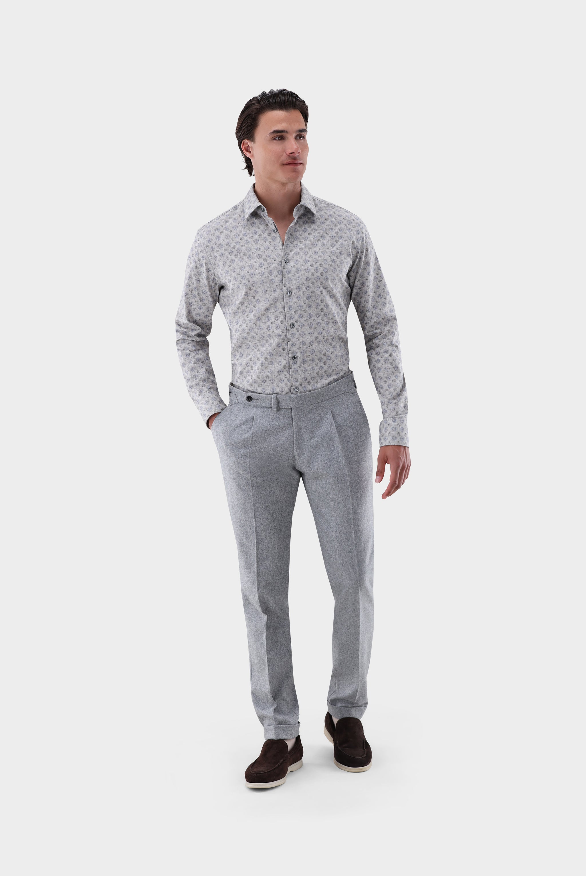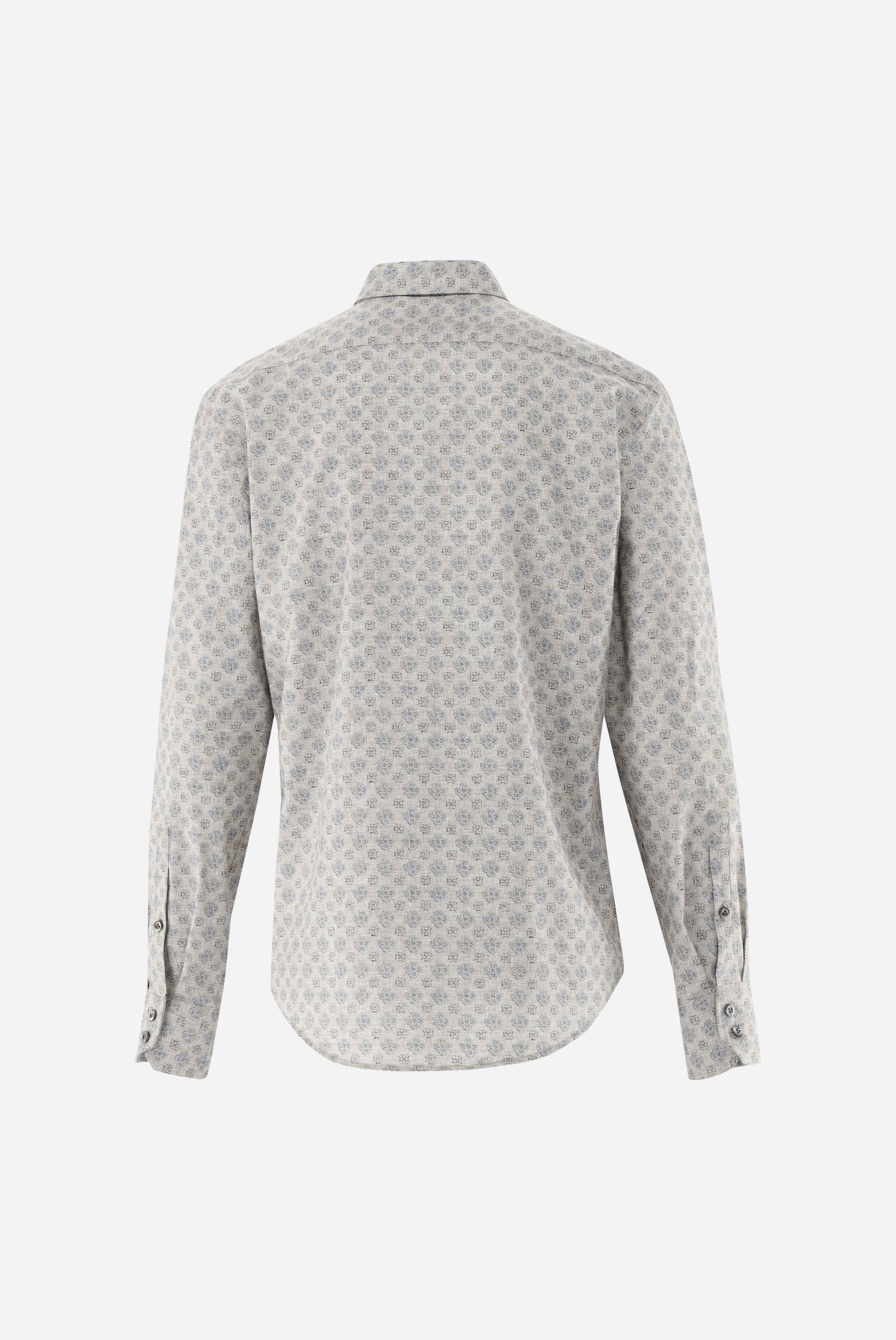 Hemd mit markantem geometrischem Design und klassischem Kent-Kragen. Die Ausführung ohne Abnäher sorgt für eine glatte Passform, während neutrale Innenmanschetten und eine Passe in Kontrastfarbe raffinierte Akzente setzen. Hochwertige Perlmuttknöpfe betonen den edlen Charakter. In figurbetontem Slim-Fit geschnitten, bietet das Hemd eine moderne Silhouette – perfekt für stilbewusste Outfits mit Retro-Charme im Business- oder Freizeitbereich.