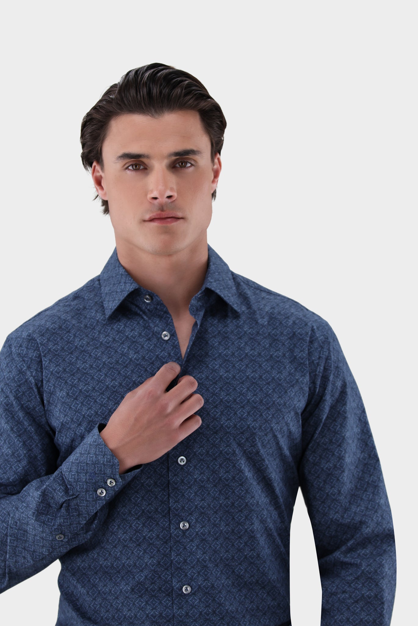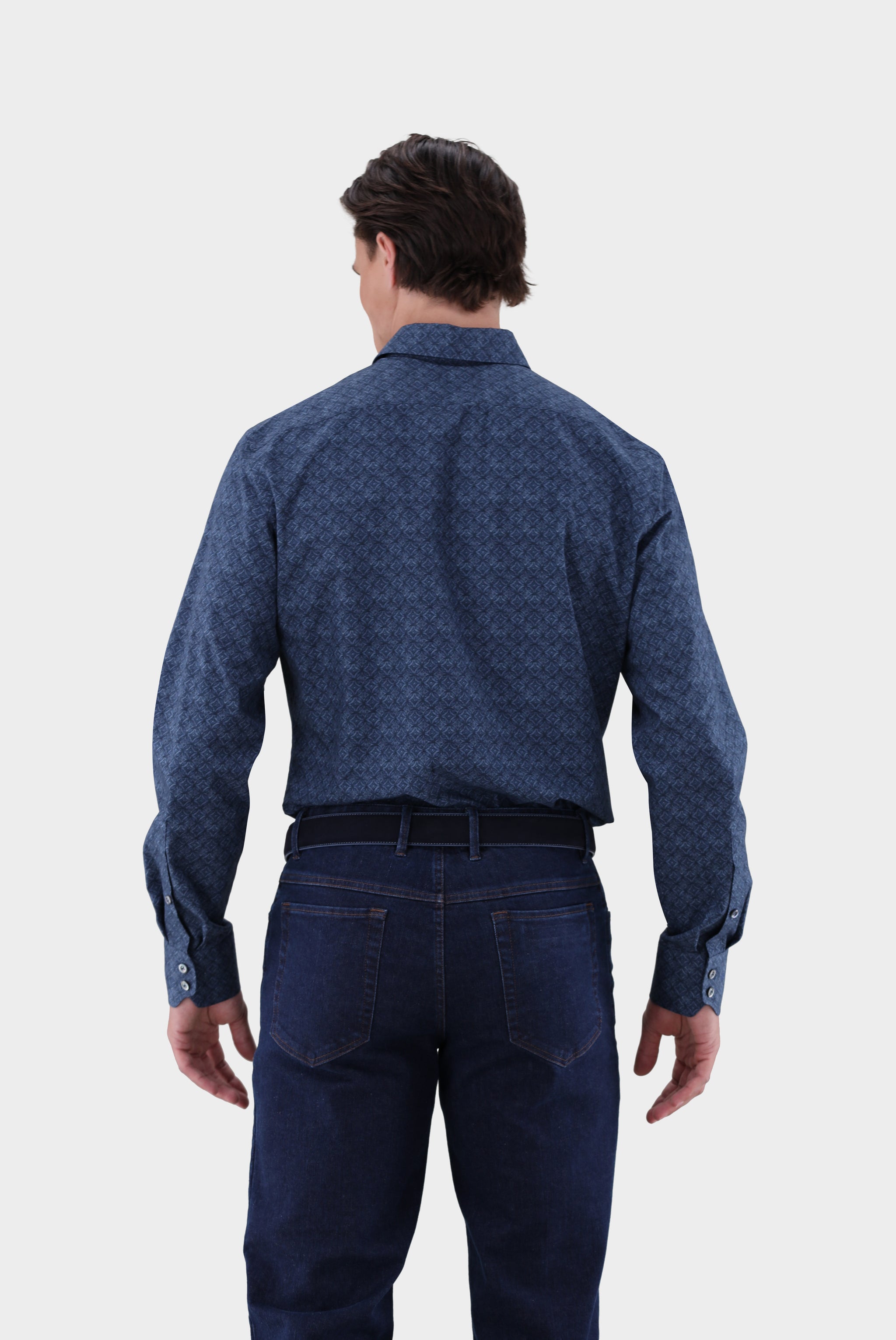 Dieses Hemd mit Medaillon-Print kombiniert einen denimähnlichen Look mit der weichen Haptik gebürsteter Popeline. Der klassische Kentkragen verleiht dem Modell eine strukturierte Optik und sorgt für vielseitige Kombinationsmöglichkeiten. Taillierende Abnäher auf der Rückseite bieten eine optimierte Passform. Das Material überzeugt durch angenehmen Tragekomfort und gepflegte Erscheinung. Ein stilvolles Hemd für moderne Casual- und Business-Looks.