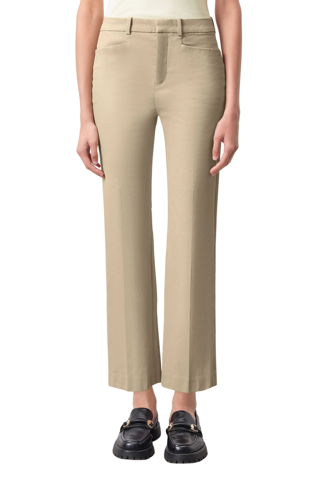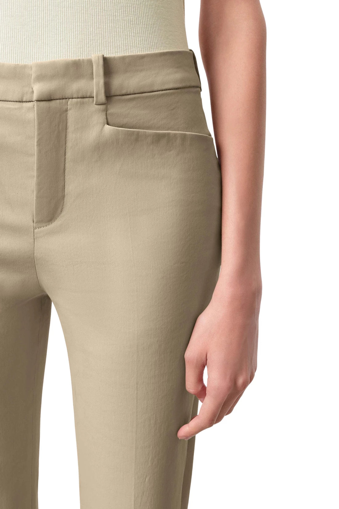BASKET is a classy trouser version in a shortened length and straight leg with a crease. The swing pockets are a special feature. The cotton material is coated, giving it a classy leather look.