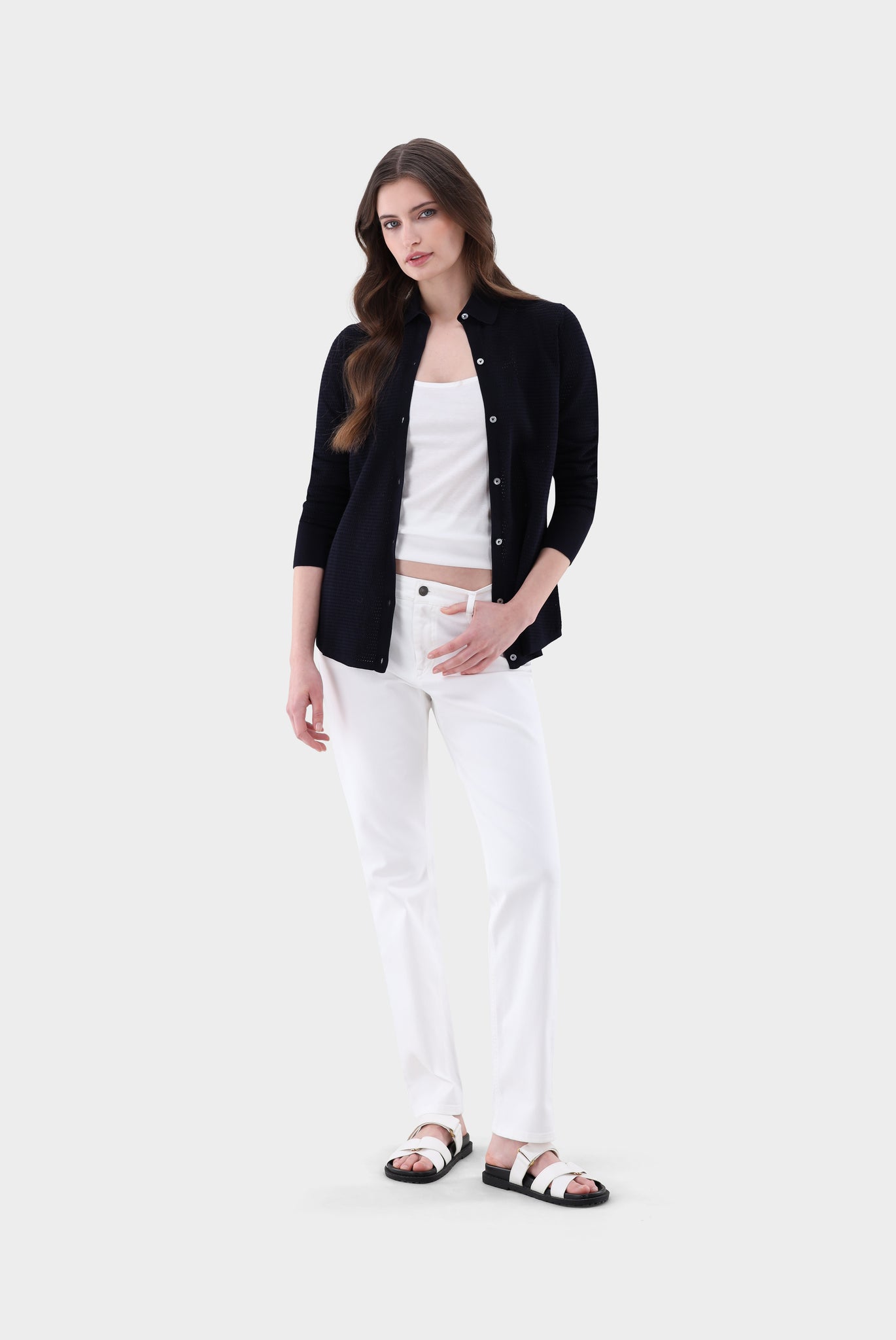 Die Strick Bluse mit Retro Struktur aus Air Cotton überzeugt durch Tragekomfort und hochwertige Verarbeitung. Der Einsatz von gezwirnten, fein gestrickten Baumwollgarnen mit einer leichten Struktur, welche gleichzeitig blickdicht sind, bewirkt besondere Luftdurchlässigkeit und verleiht dem Hemd einen besonders modernen look.
