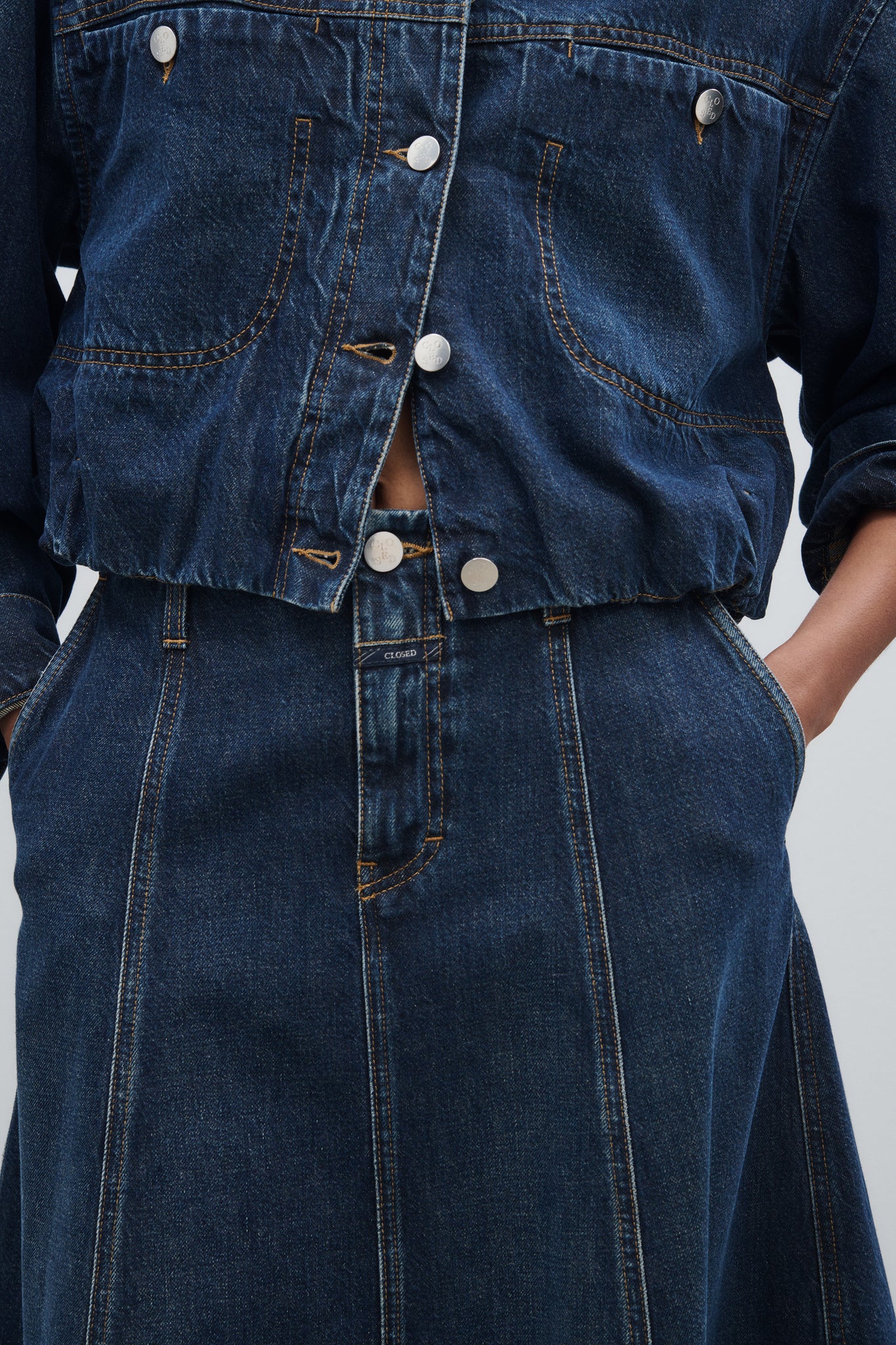 A-Linie mit Eingriffstaschen und Kontrastnähten