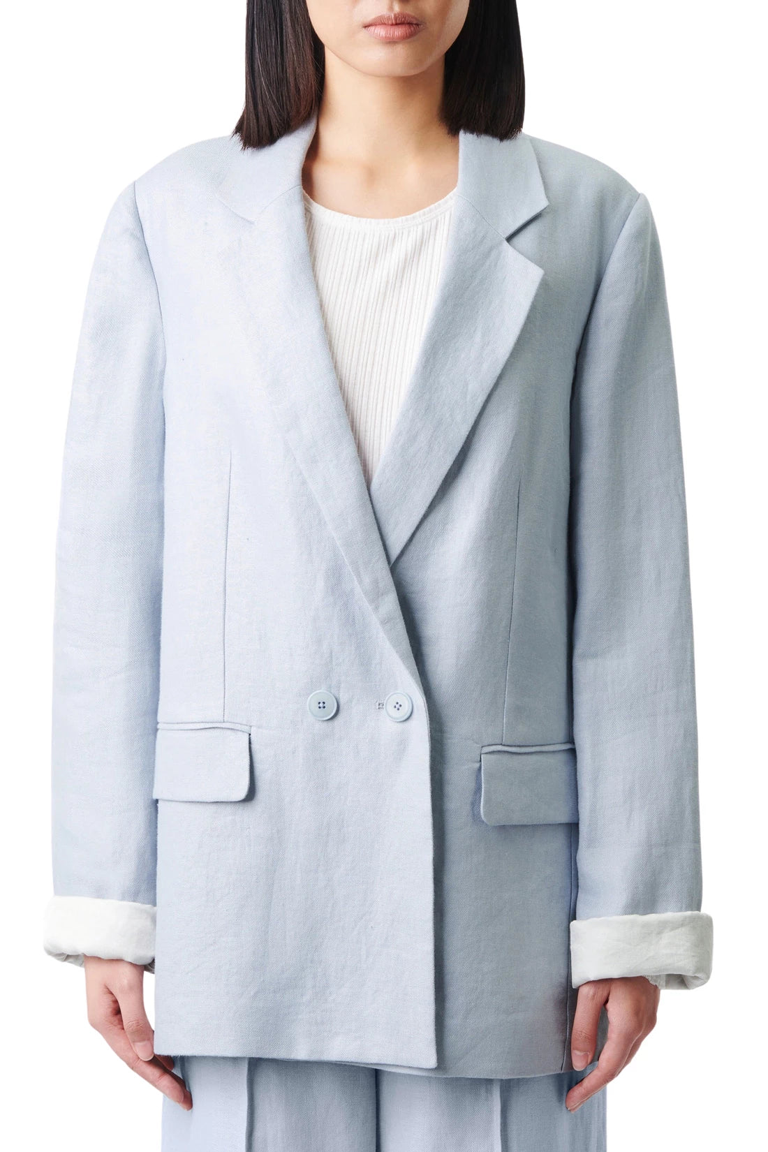 TYNEHAM is a casual double-breasted blazer in a relaxed fit. It has extra-long carded sleeves and a notch lapel. The high-quality 100% linen fabric exudes a natural beauty and gives this style an elegant and authentic touch.