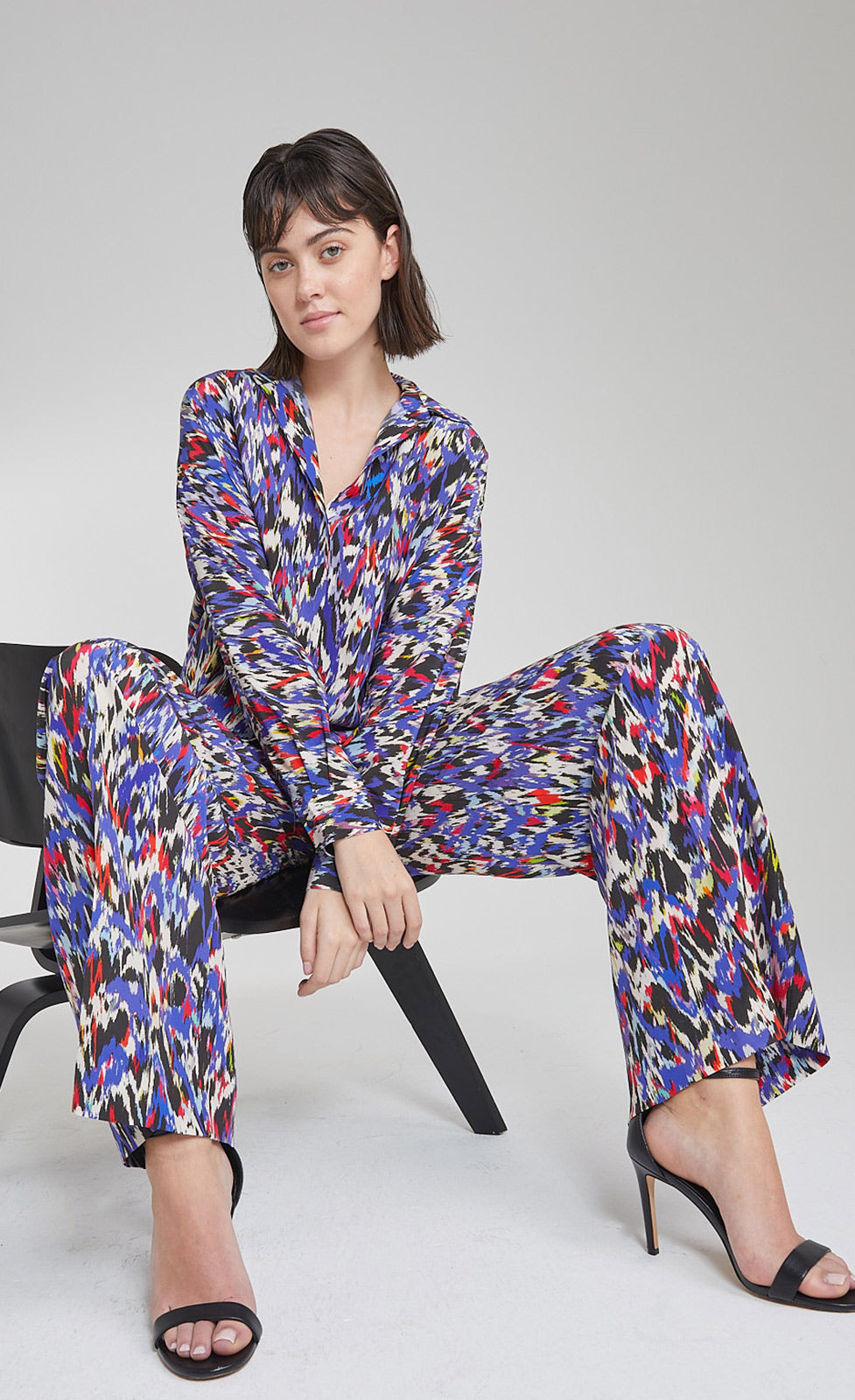 Diese Hose aus reiner Seide mit Alloverprint besticht durch ihre zeitlose Eleganz. Für den angesagten Pyjama-Look bieten wir die passende Bluse zu diesem Style an.