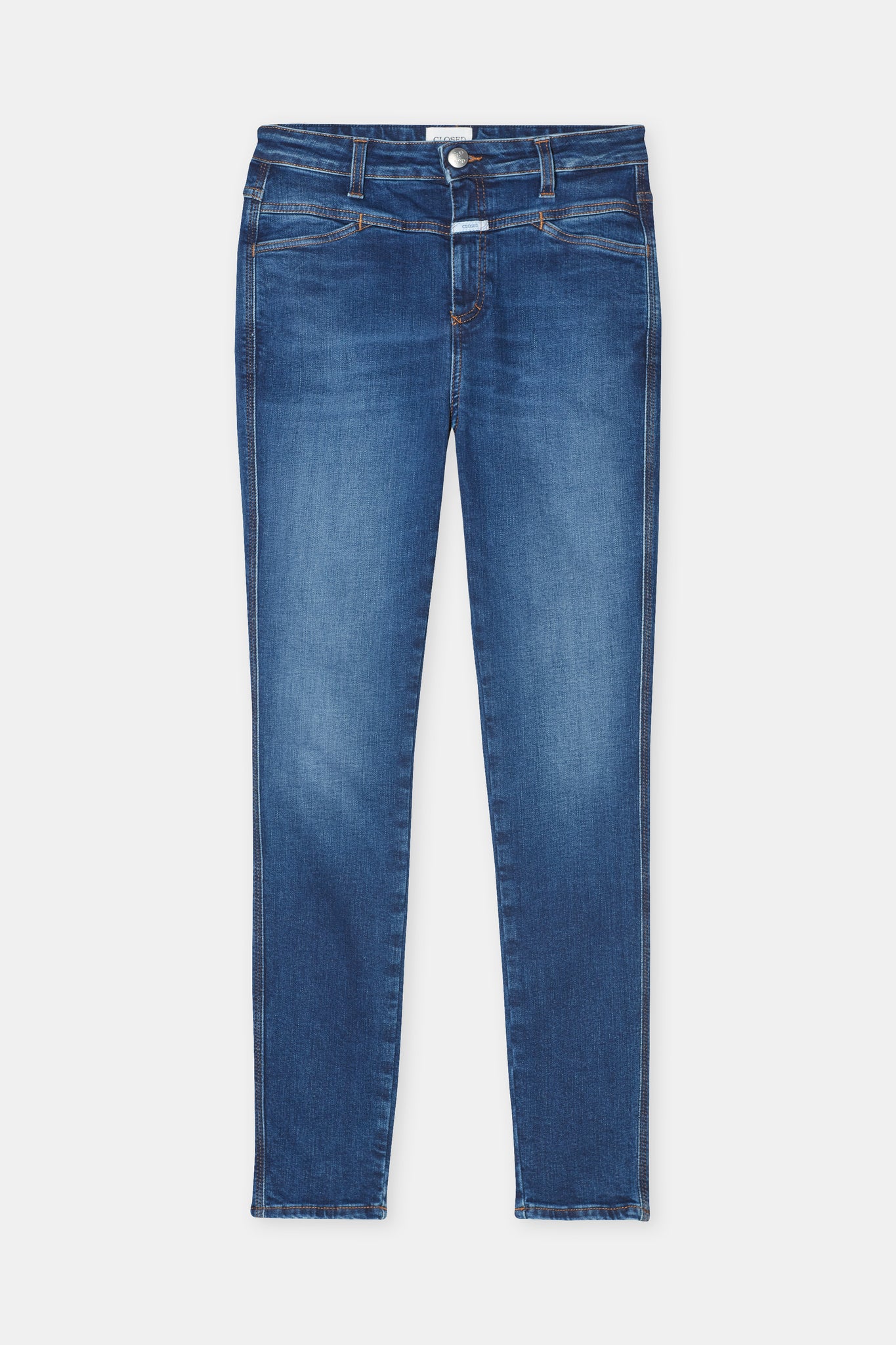 Indigoblaue Worn-in-Waschung, Tobacco-Stitching, tonige Nähte, X-Pockets