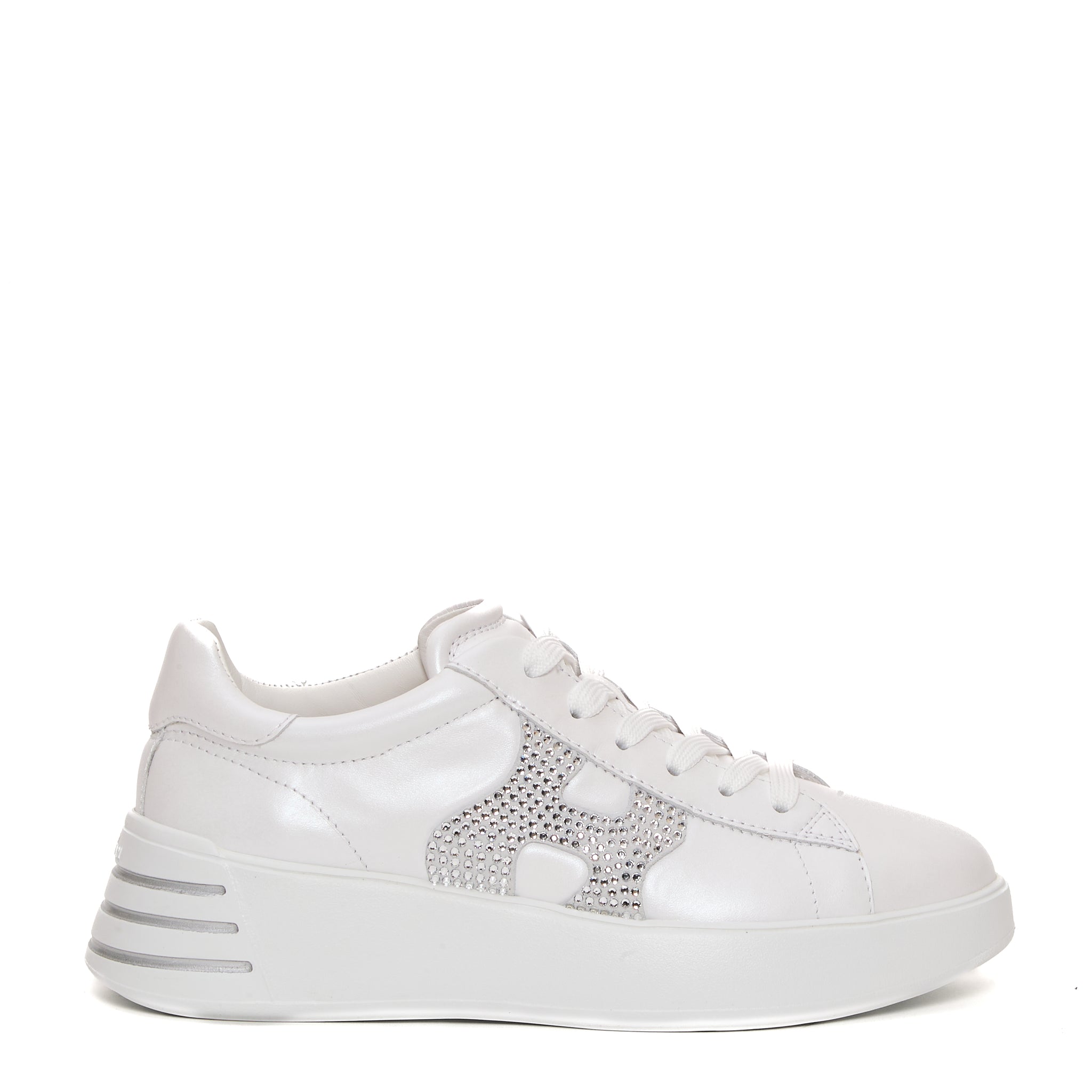 Step into elegance with the Hogan Rebel sneakers. Crafted in Italy, these luxurious white leather shoes feature stunning suede accents adorned with rhinestones. Enjoy comfort with a memory foam insole and a stylish hand-decorated sole.
