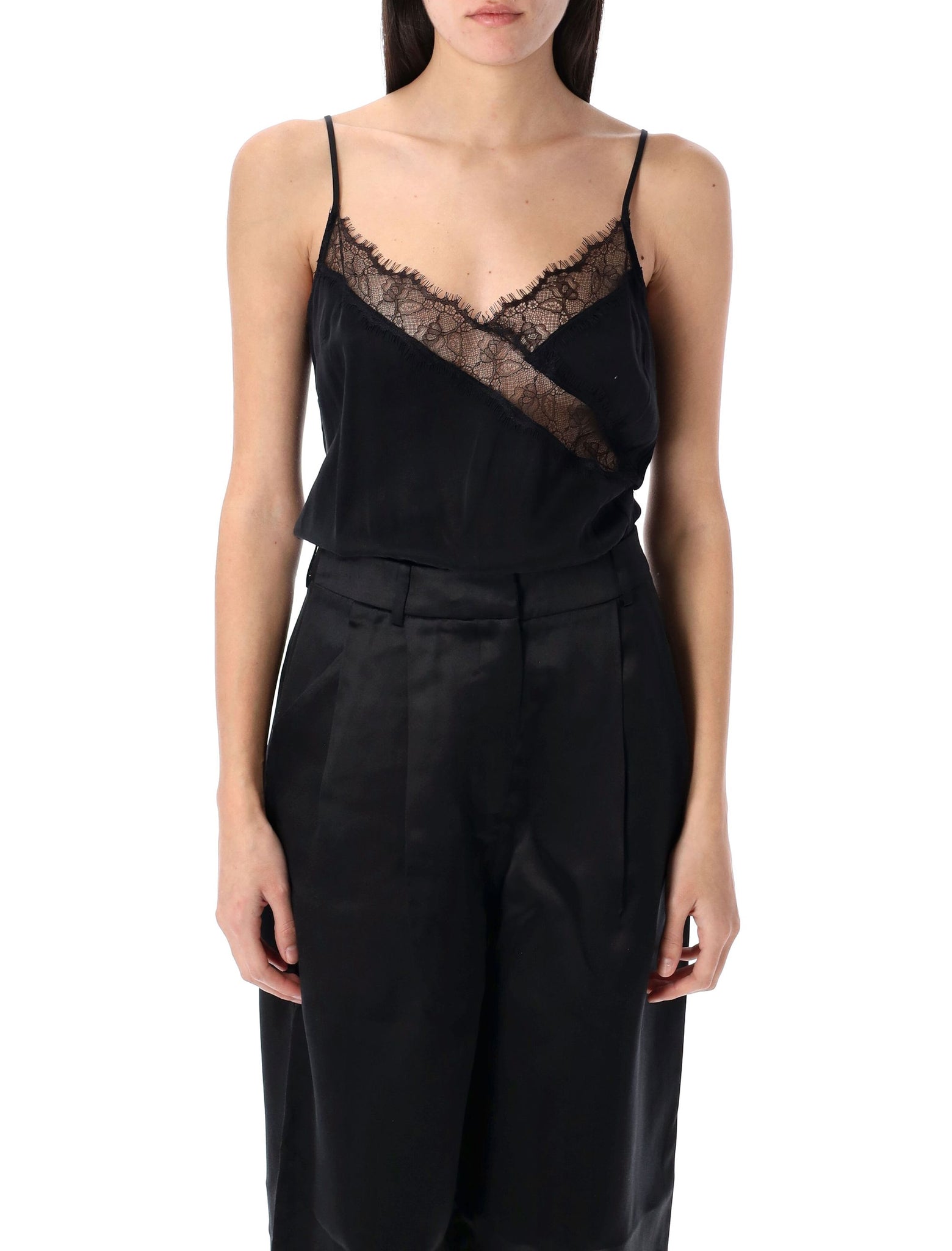 Elevate your wardrobe with this chic black body featuring elegant lace trim and adjustable spaghetti straps. The elasticated waist ensures a perfect fit, while snap closures add convenience. A must-have for stylish layering or solo wear!