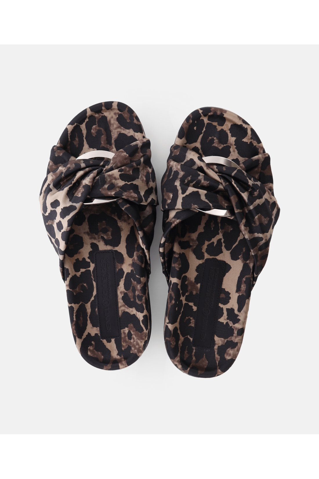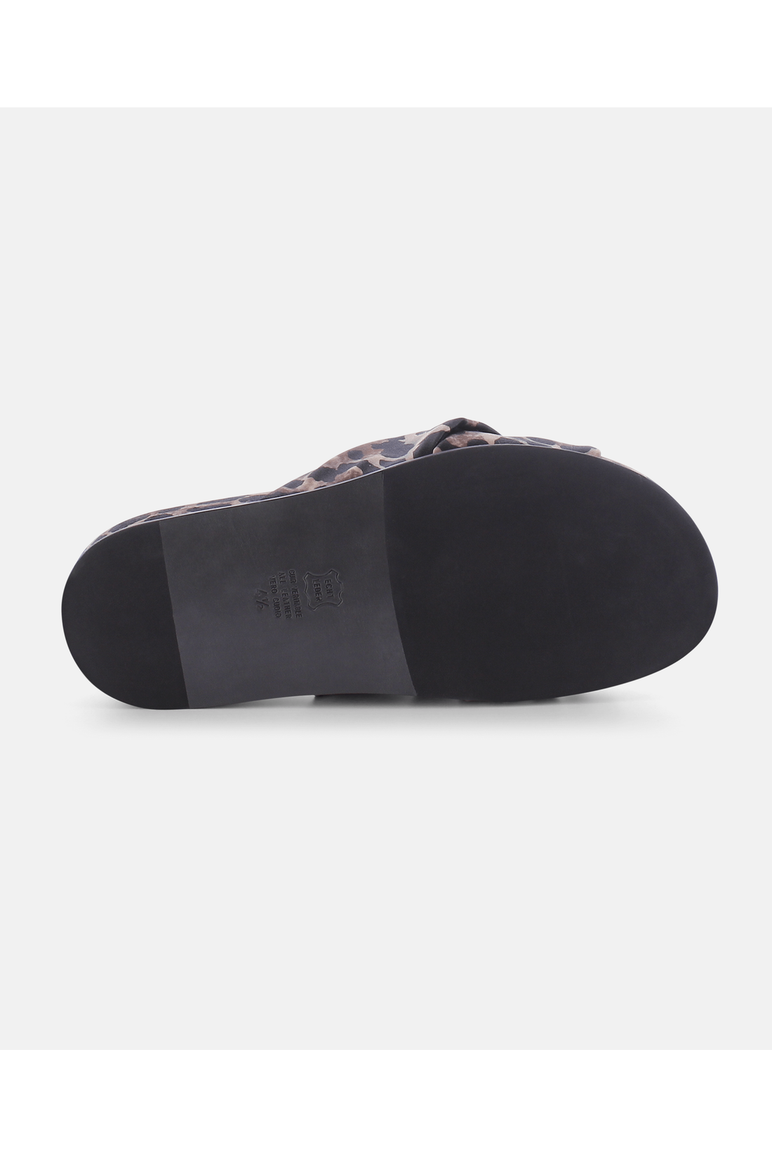 Die stilvolle Pantolette SODA überzeugt im femininen Leo-Design. Der edel geknotete Halteriemen aus Satin überzeugt mit hochwertiger Qualität und einem anschmiegsamen Tragegefühl. Die liebevoll von Hand angebrachte Zierschnalle sorgt für luxuriöse Akzente. Durch das komfortable Fußbett kommt man schick und bequem durch den Tag.