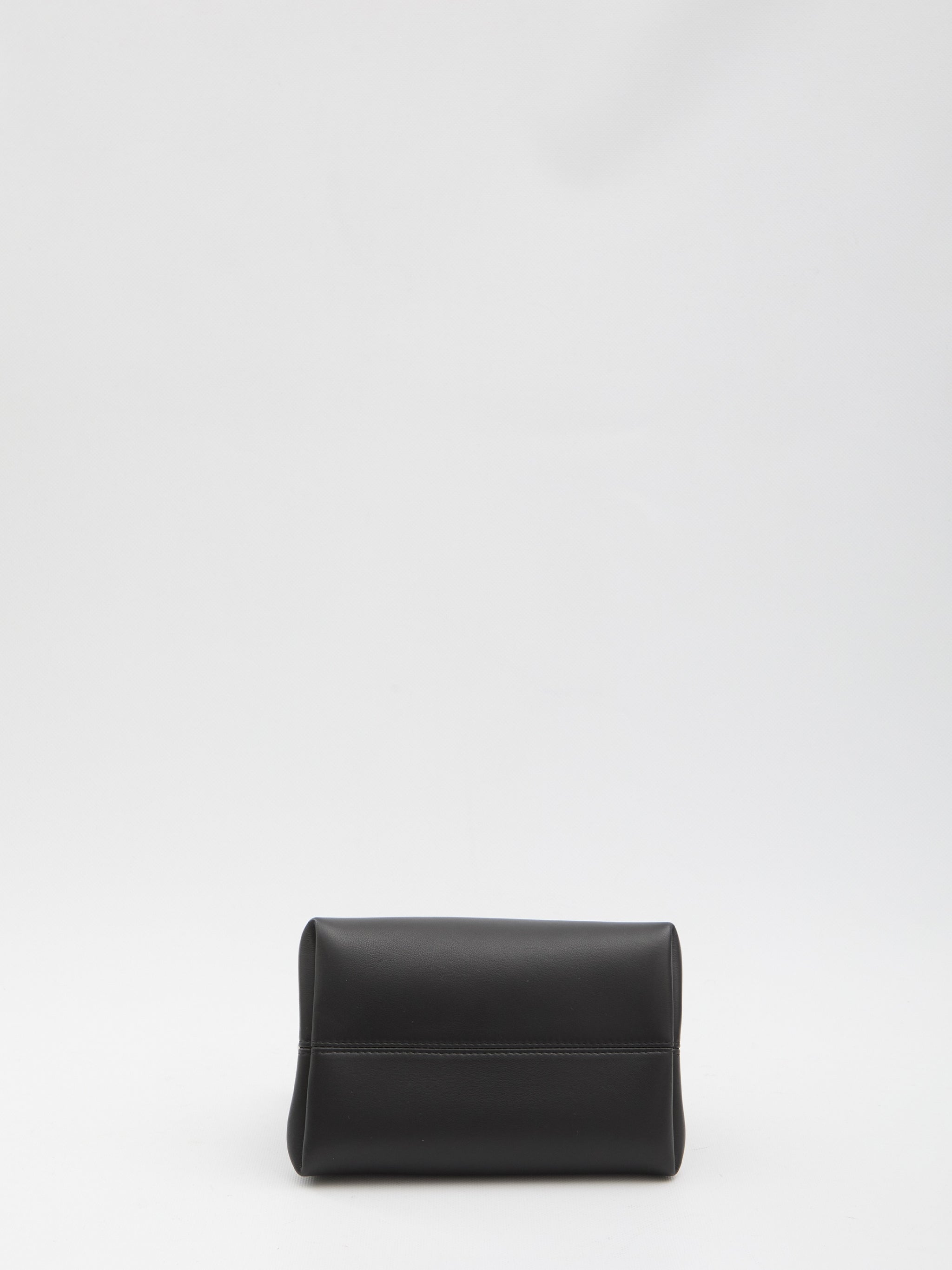 Black nappa leather bag. It features a removable thin shoulder strap, a snap closure with contrasting Rond-Carré details in silver and gold-tone metal, one internal compartment, and an internal leather flat pocket. Dust bag included. Any imperfections in the leather should not be considered manufacturing defects, but rather a characteristic of the material.