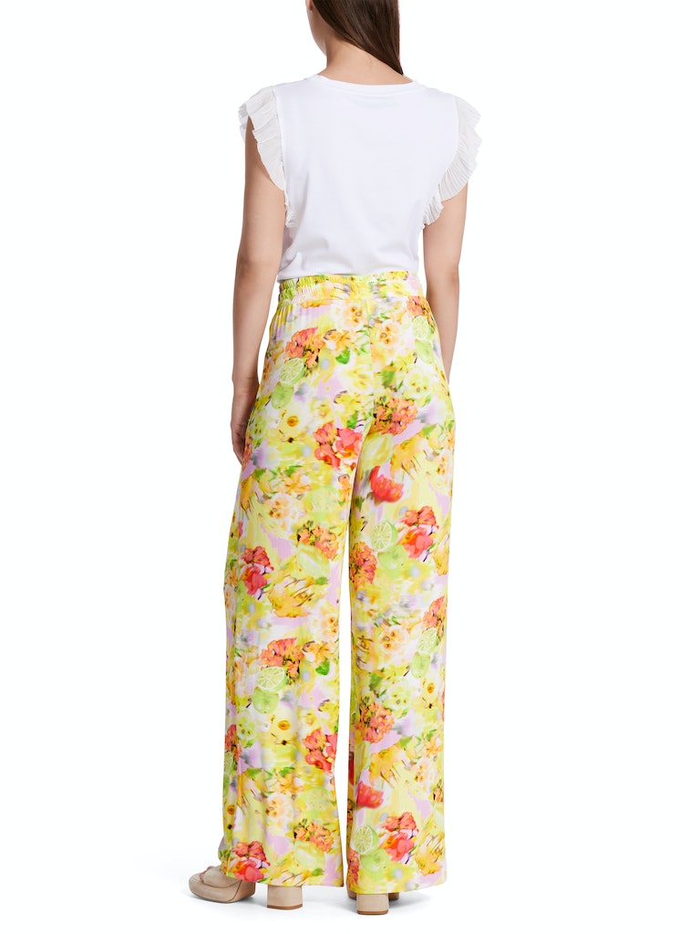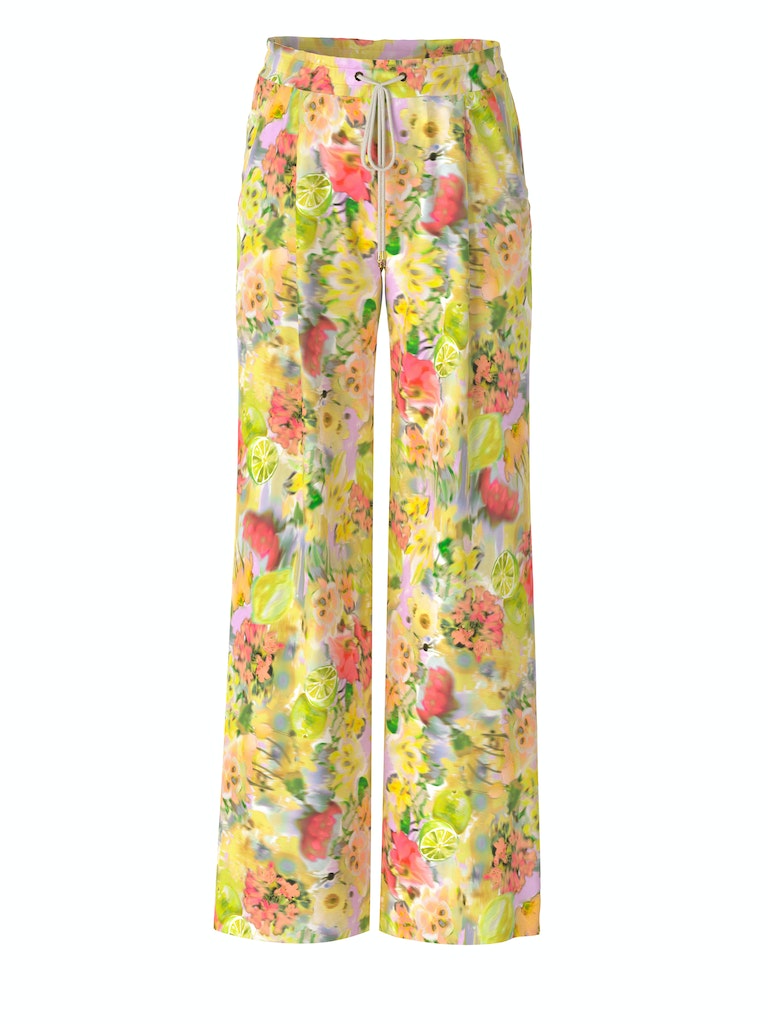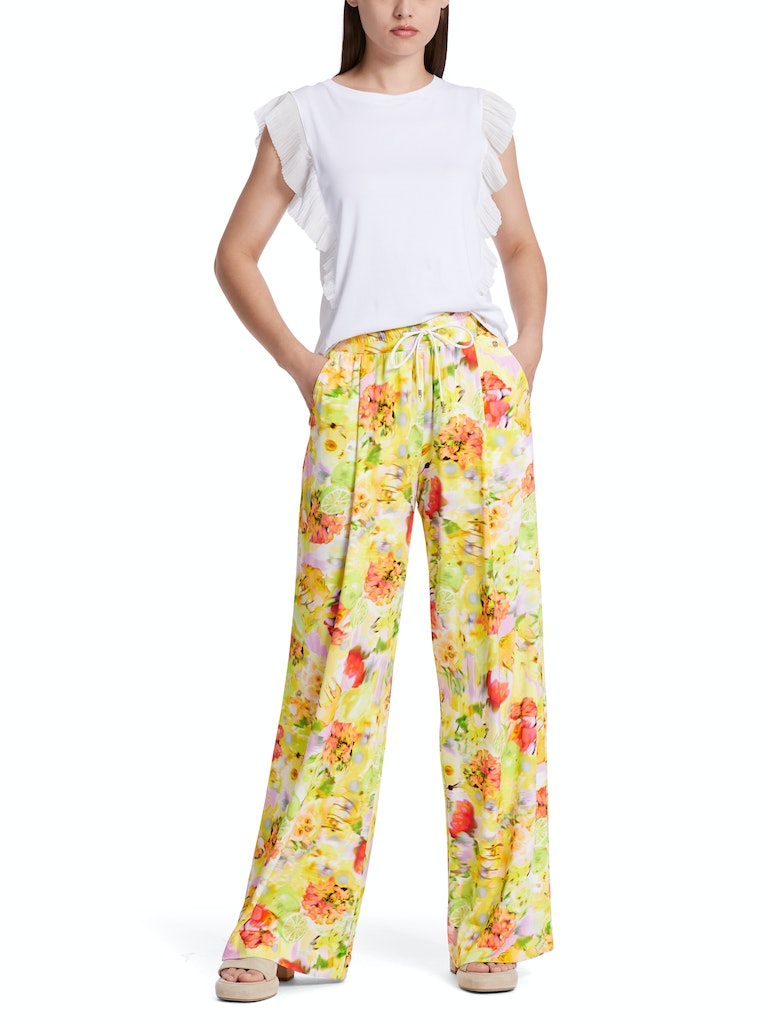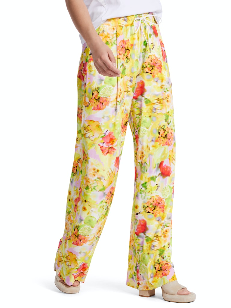 Weite Hose im weich fließenden Fall. Die Hose WEDI ist allover mit einem bunten Blumen-Dessin versehen. Das weite Bein präsentiert sich mit tiefen Falten und in normaler Länge. Taschen ergänzen den entspannten Look. Schönes Detail ist der elastische, regulär hohe Bund mit glänzenden MC-Logo-Enden.