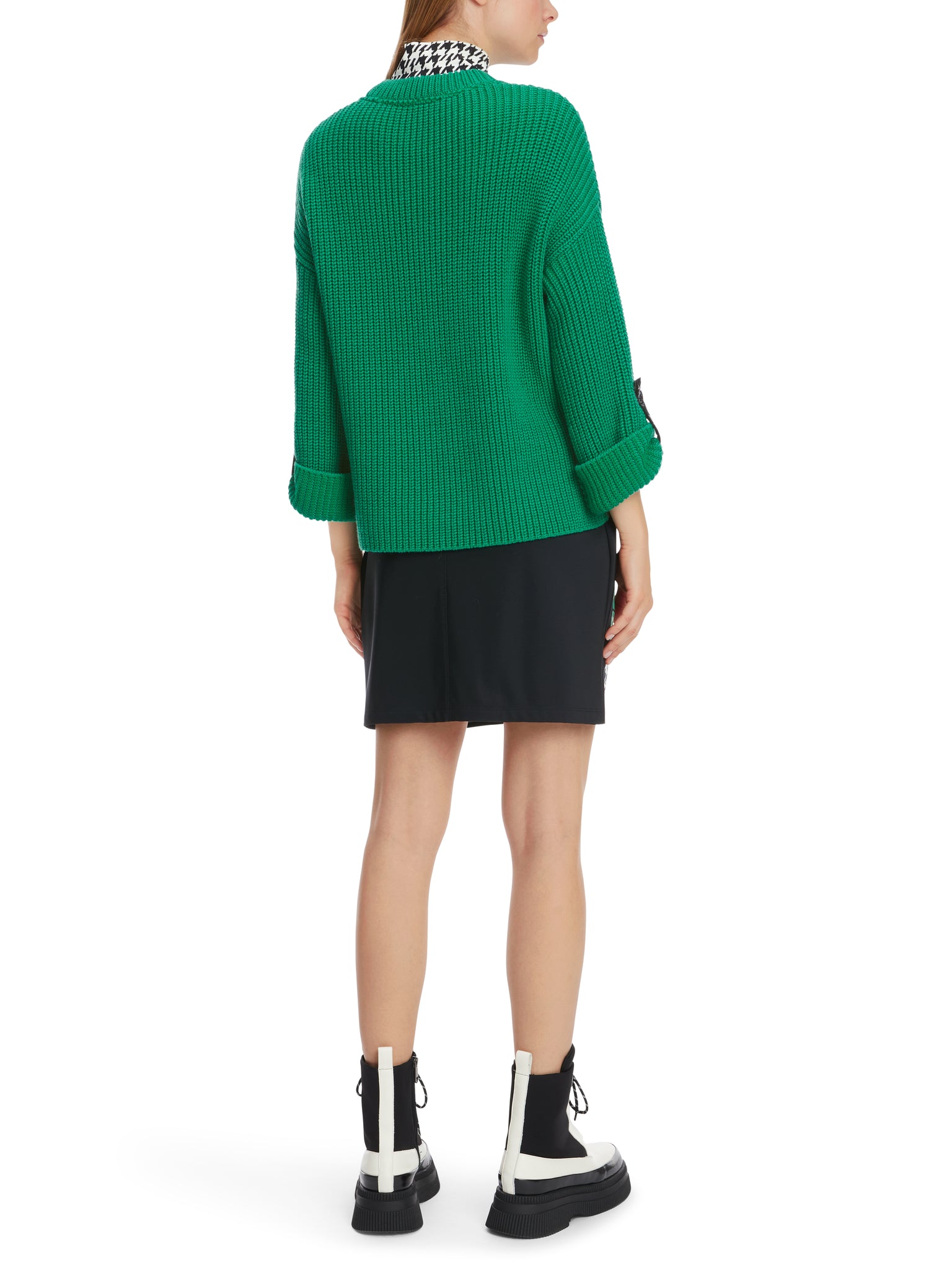 Shiny Nylon Patches als Taschen und knöpfbare Ärmelriegel sind die Highlights bei diesem Crew-Neck-Sweater. Seine legere Silhouette kommt mit verlängertem Rücken und Seitenschlitzen. Der Rippen-Pullover ist mit Wolle und Alpaka „Knitted in Germany“: Das Verstricken der Garne auf hochmodernen Strickmaschinen und die Veredelung der Stoffe geschehen am Standort Deutschland. Zusammengenäht werden die einzelnen Teile wie Ärmel, Vorderteil etc. in europäischen Partnerbetrieben.