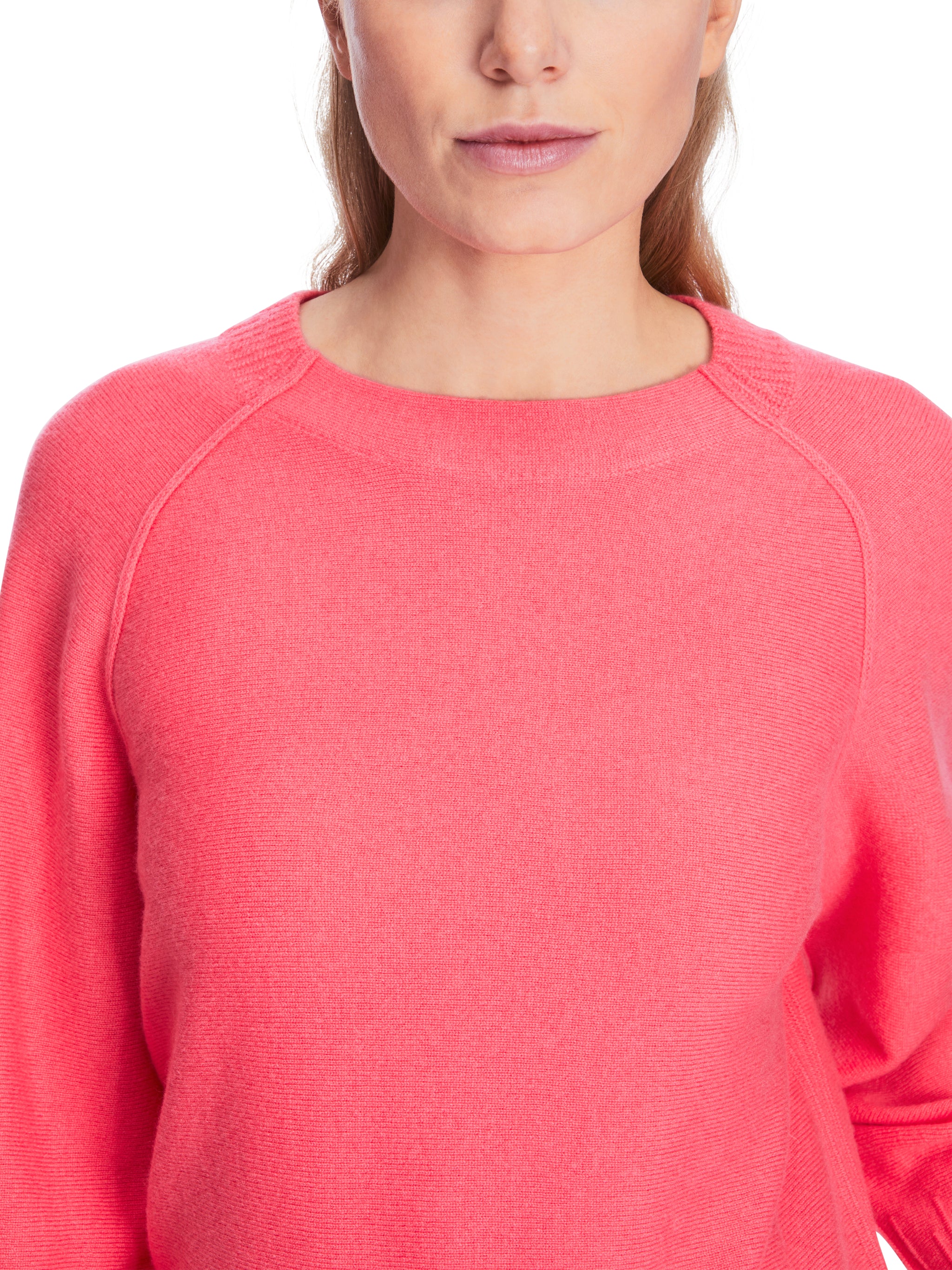 Gefertigt aus wärmender Schurwolle und weichem Kaschmir kommt dieser Strick-Sweater aus dem Nachhaltigkeitslabel "Rethink Together". Er hat einen lockeren Schnitt mit Raglanärmeln. Die langen Ärmel und der Saum sind mit einem gestrickten Zacken-Muster versehen. Der Pullover besitzt einen Rundhalsausschnitt.