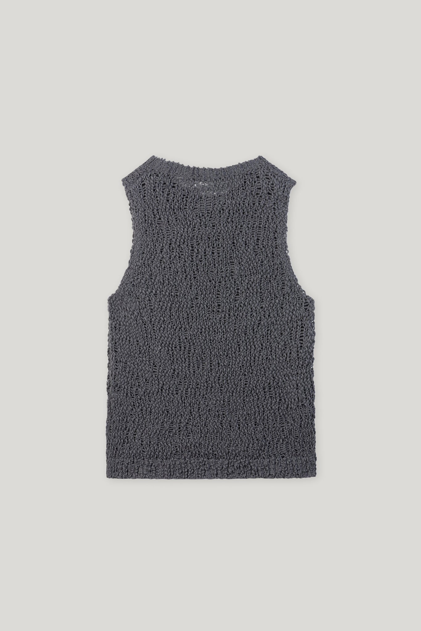 Top aus sommerlichem Bouclé-Garn mit Rundhalsausschnitt. Die offene, unregelmäßige Struktur kennzeichnet die besondere Optik.