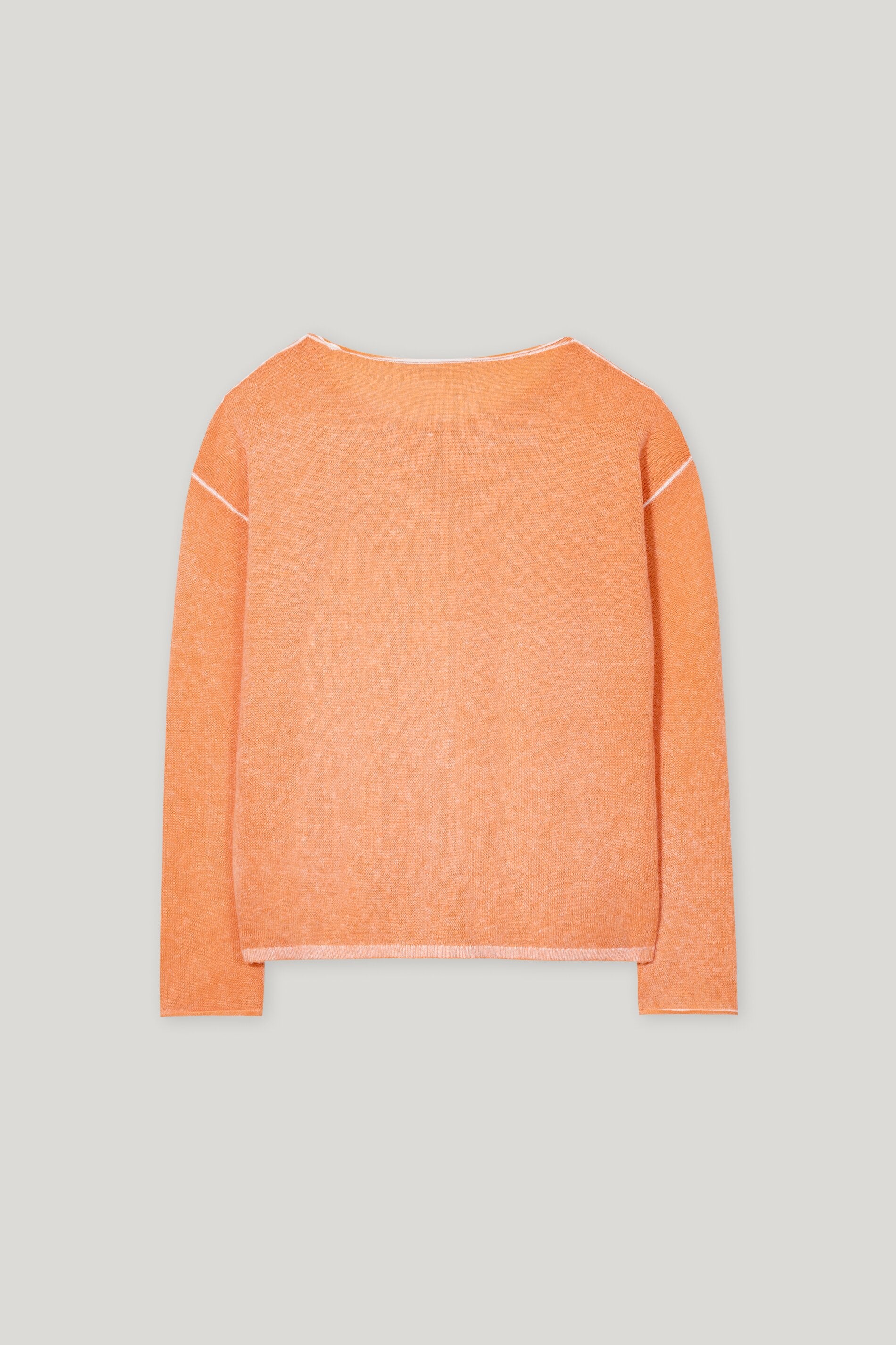 Dünner Pullover aus einer weichen Wolle-Lyocell-Mischung mit Used-Waschung an Saum und Nähten. Der Rundhalsausschnitt und die langen Ärmel sind mit Rollkäntchen gestaltet.