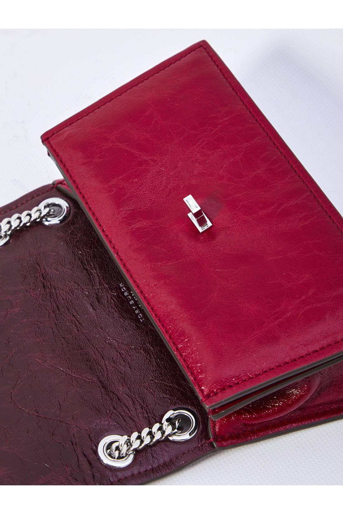 Red nappa leather bag. It features a sliding chain shoulder strap in silver-toned metal, turn-lock closure with metal logo and flap on the front, two internal compartments and a flat pocket, fabric lining. Dust bag included. Any imperfections in the leather are not considered manufacturing defects, but a characteristic of the material.