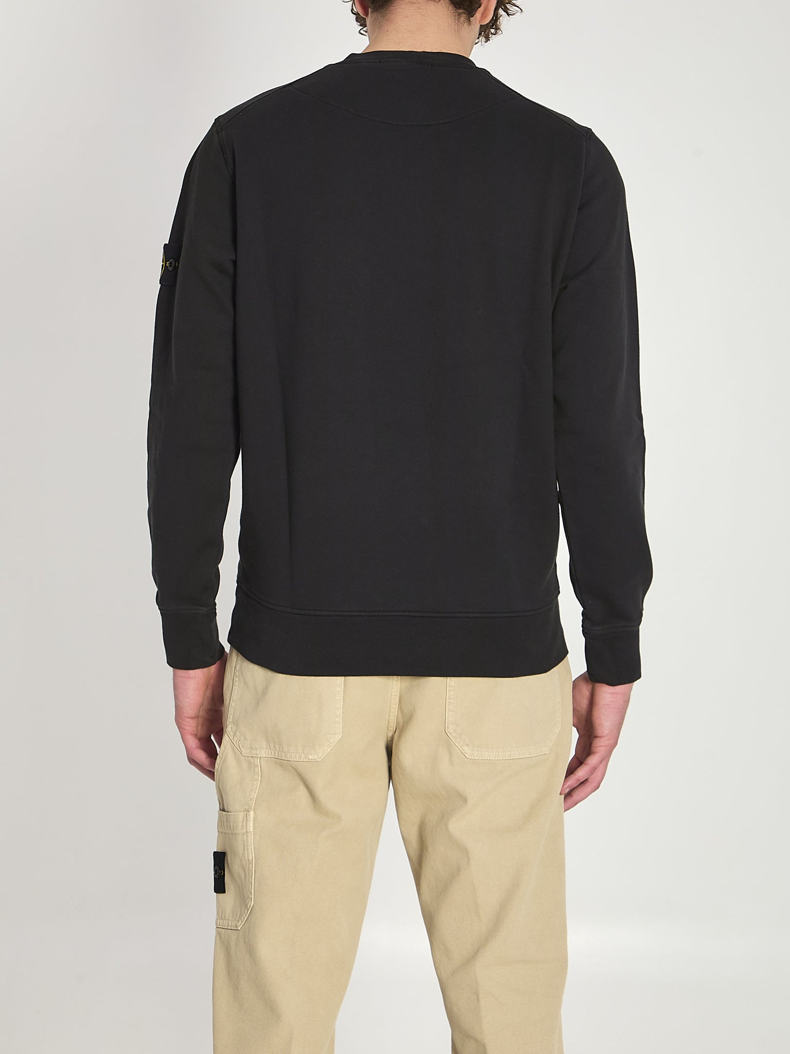 Black cotton sweatshirt. Features a ribbed crew neck, long sleeves, iconic badge on the sleeve, and ribbed cuffs and hem. Regular fit.
