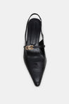 Die Slingbacks aus Ziegen-Nappa-Leder haben einen Micro-Absatz. Die schlanke, eckige Zehensilhouette wird durch ein Signature D-Ring Detail vollendet. Ein elastischer Strap hinten sorgt für optimalen Halt.