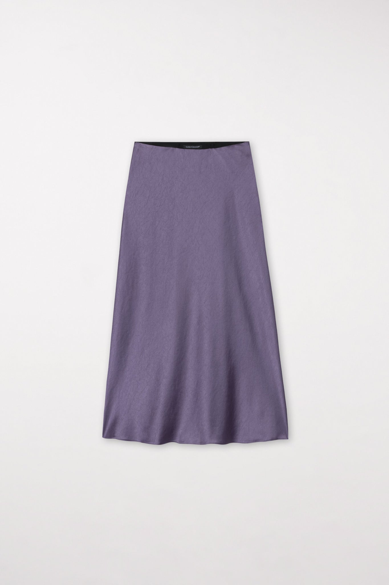 A flared skirt made of finely woven, modern satin with a subtle sheen. The simple midi-length skirt features an elasticated waistband.