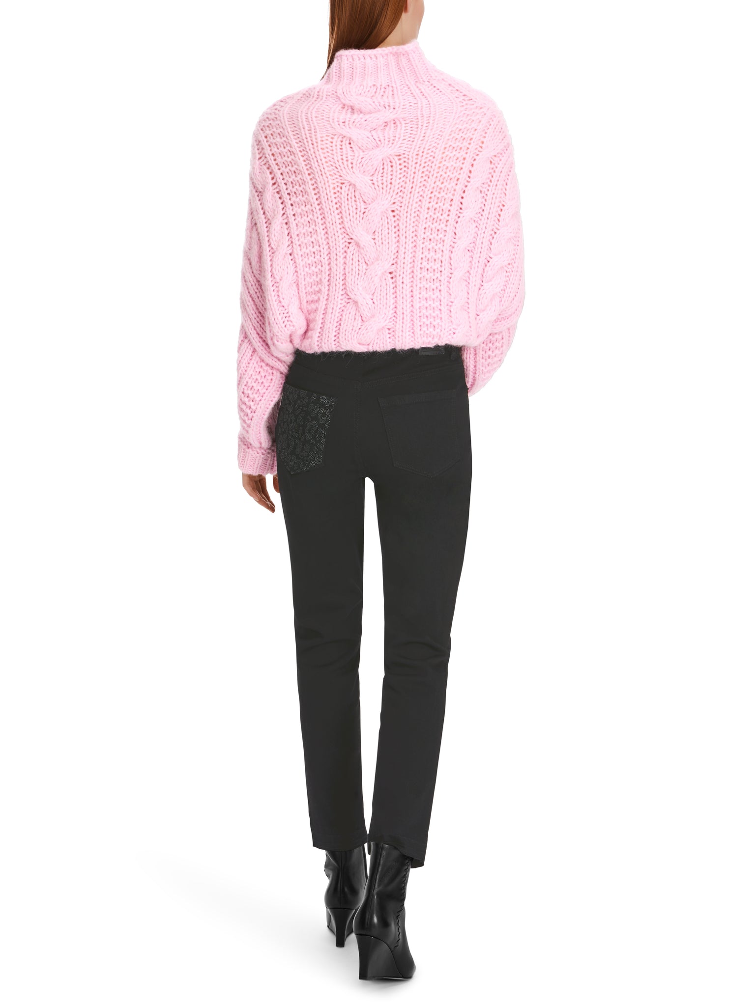 The SILEA model is made from organic cotton and carries the sustainability label "Rethink Together". The jeans have a slim fit and a tapered leg. The leg is cropped and the hem is frayed. The left back pocket is decorated with a leopard print motif in tonal rhinestones.
