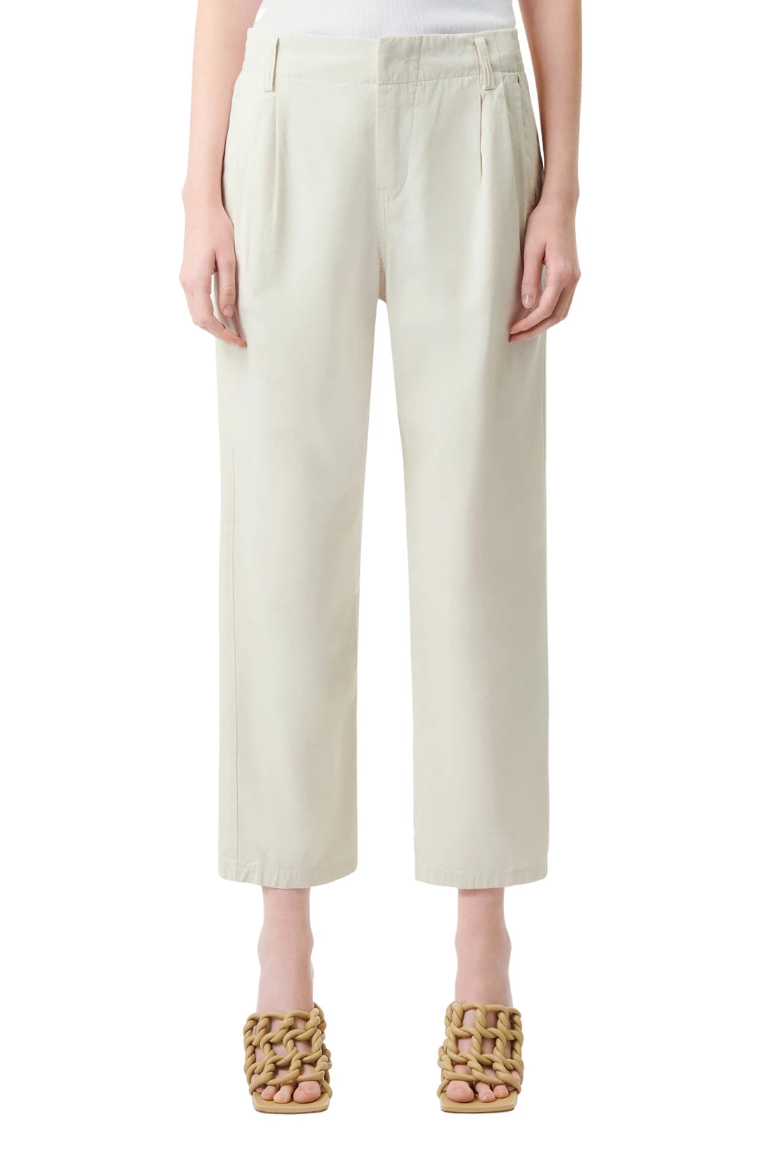 DISPATCH_O are classic pleated trousers with a cropped leg. The side slit pockets are discreet and barely visible. An elasticated waistband is integrated at the back, giving them a comfortable fit. Made from a cotton-viscose blend with a fine twill texture, which makes them pleasant and comfortable to wear.