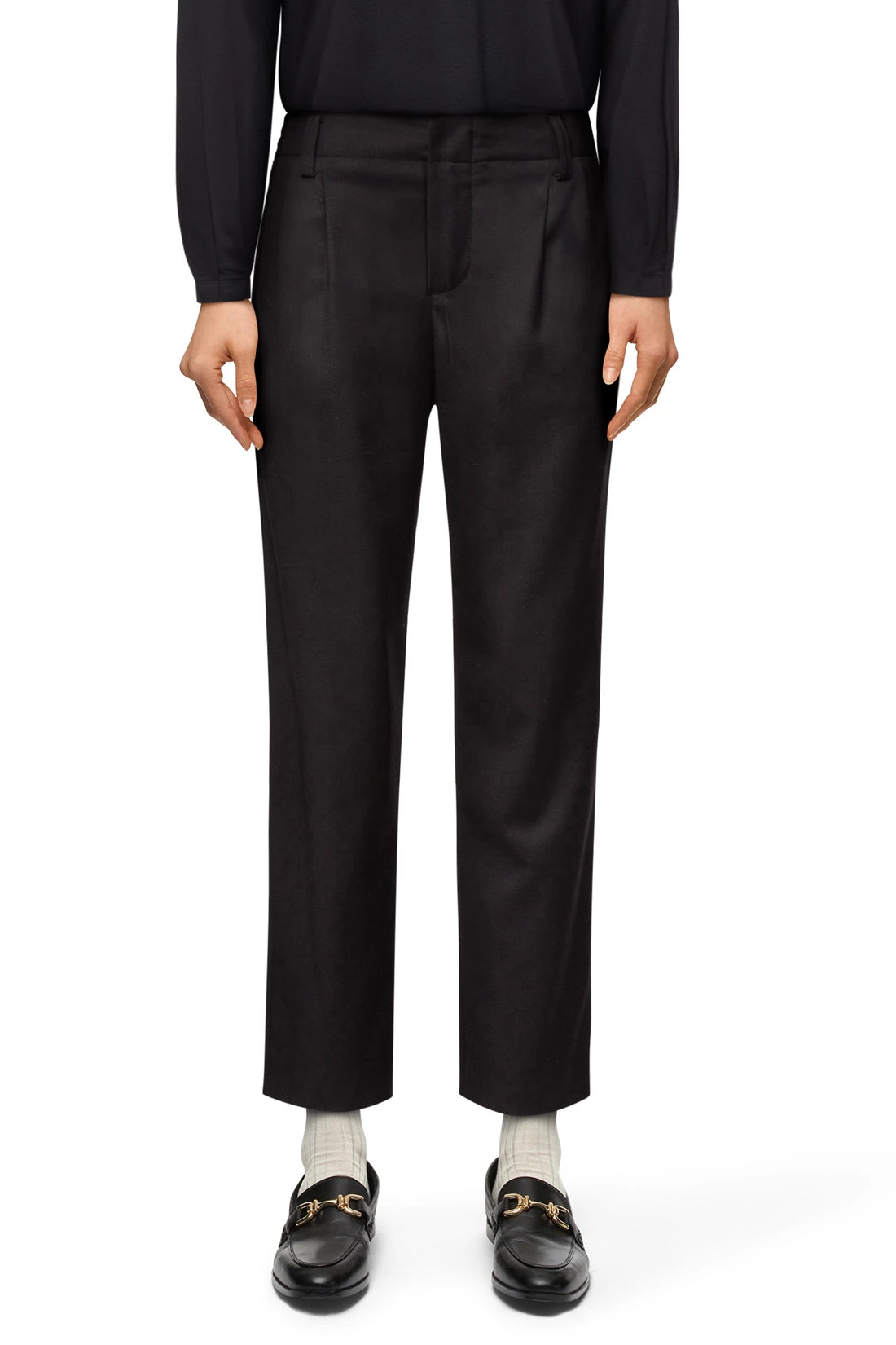DISPATCH_O is a classic pleated trouser with a cropped leg. The side slit pockets are discreet and barely visible. An elasticated waistband is integrated at the back for a comfortable fit and discover the ultimate in comfort with our flannel fabric. Made from high-quality fibres, this fabric offers unparalleled softness and warmth. With its authentic flannel texture, it is perfect for cosy and stylish garments.