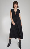 This dress has a loose fit that can be cinched into a tighter shape using two drawstrings. This allows for a variety of styling options.