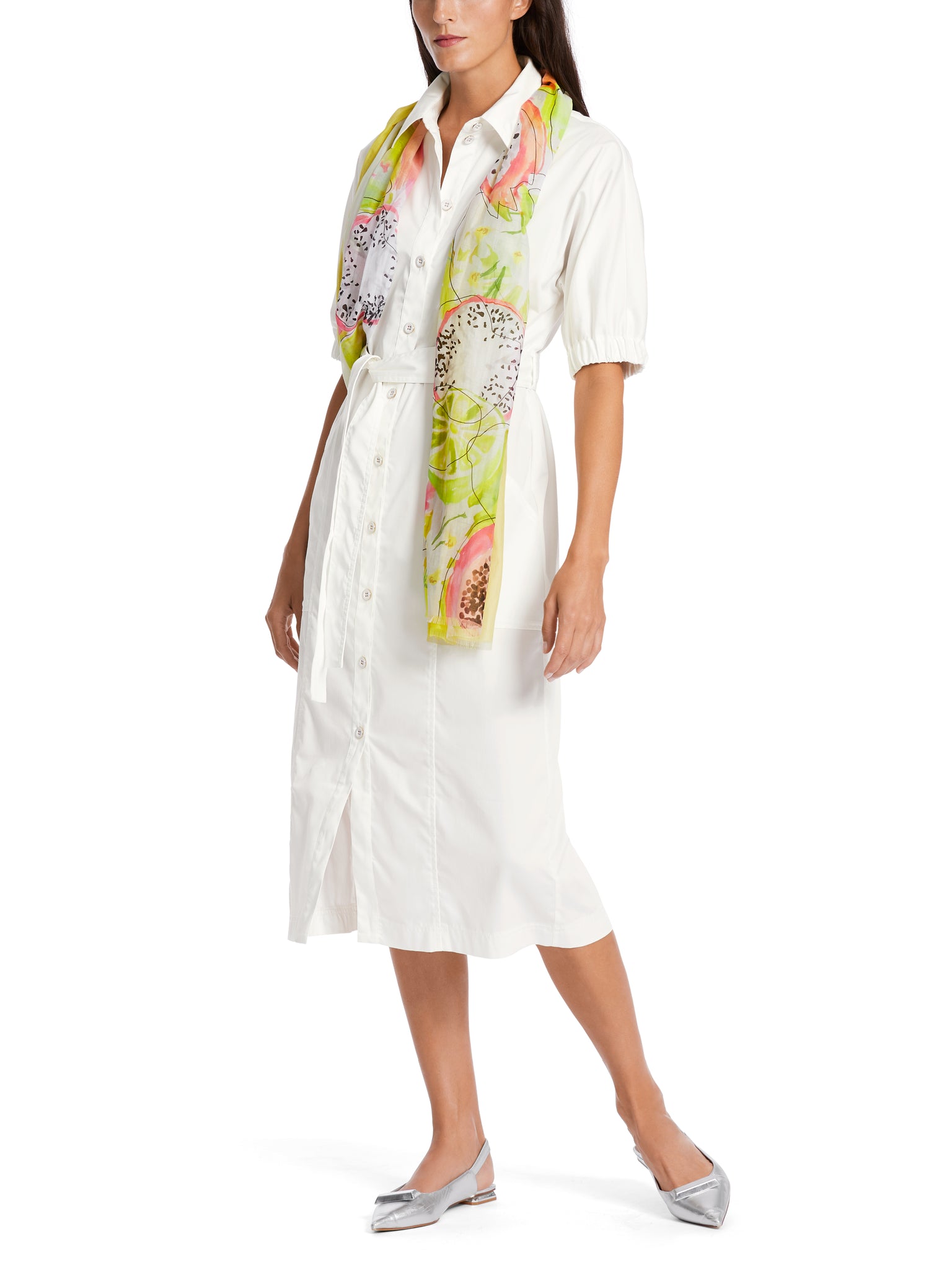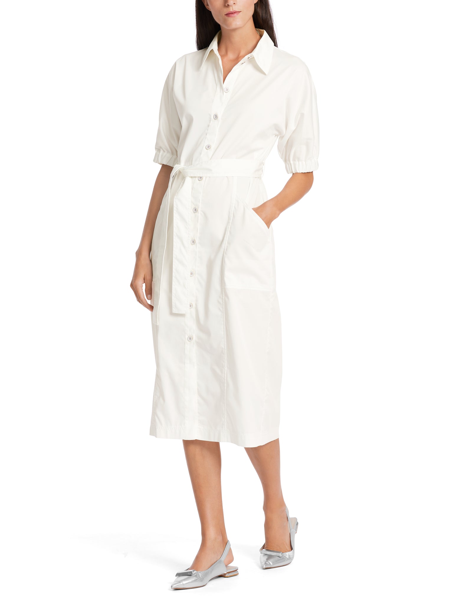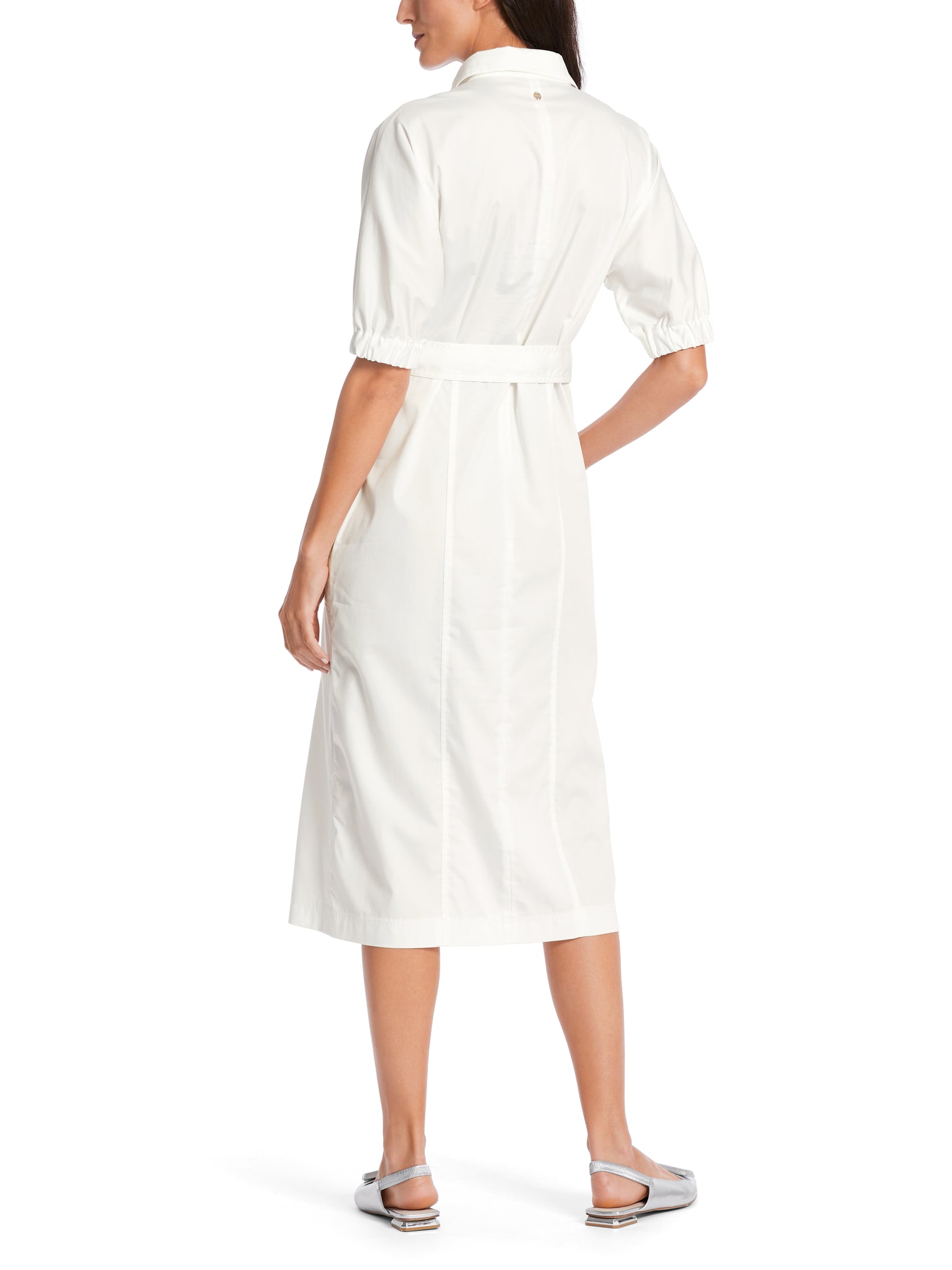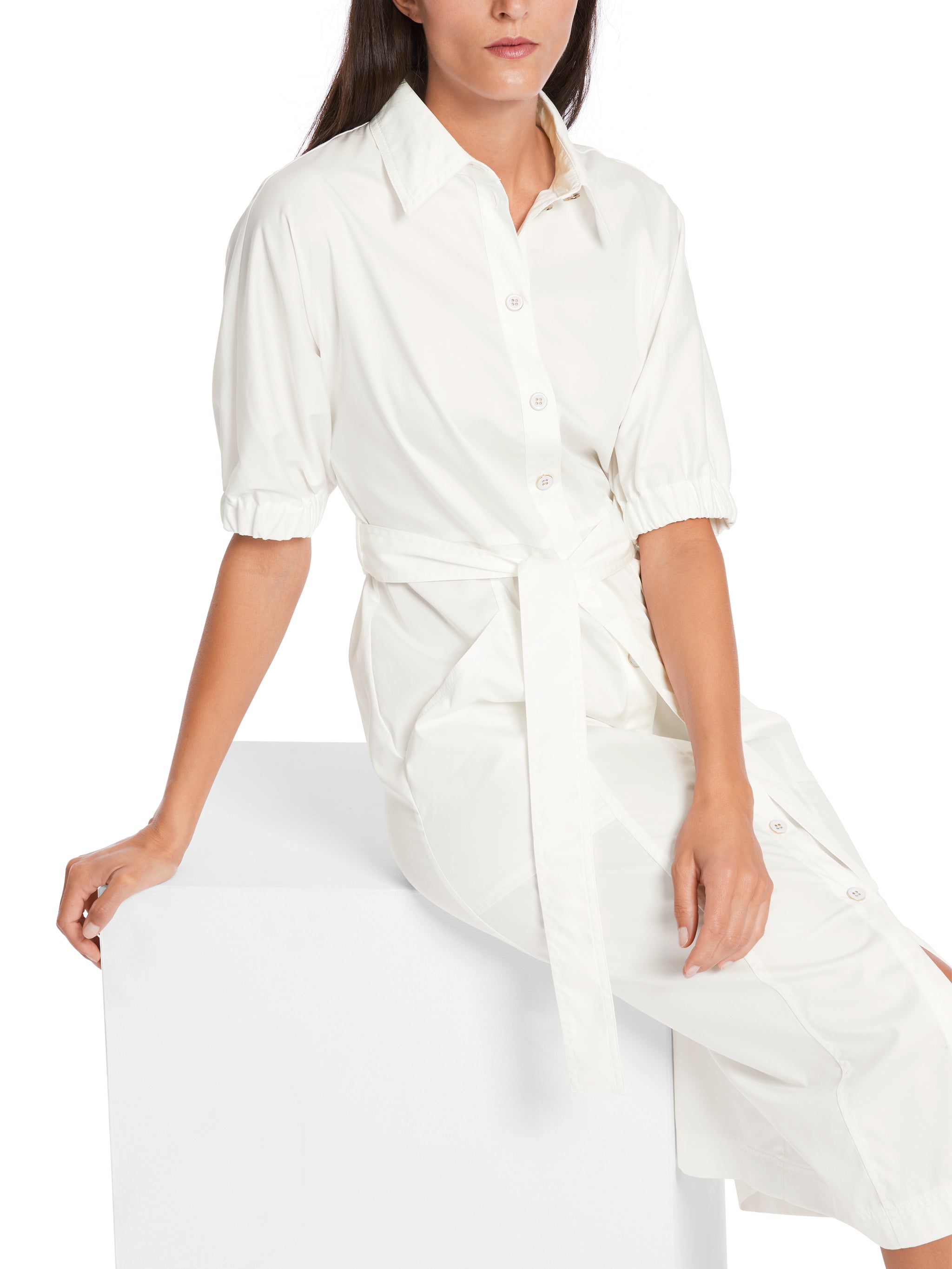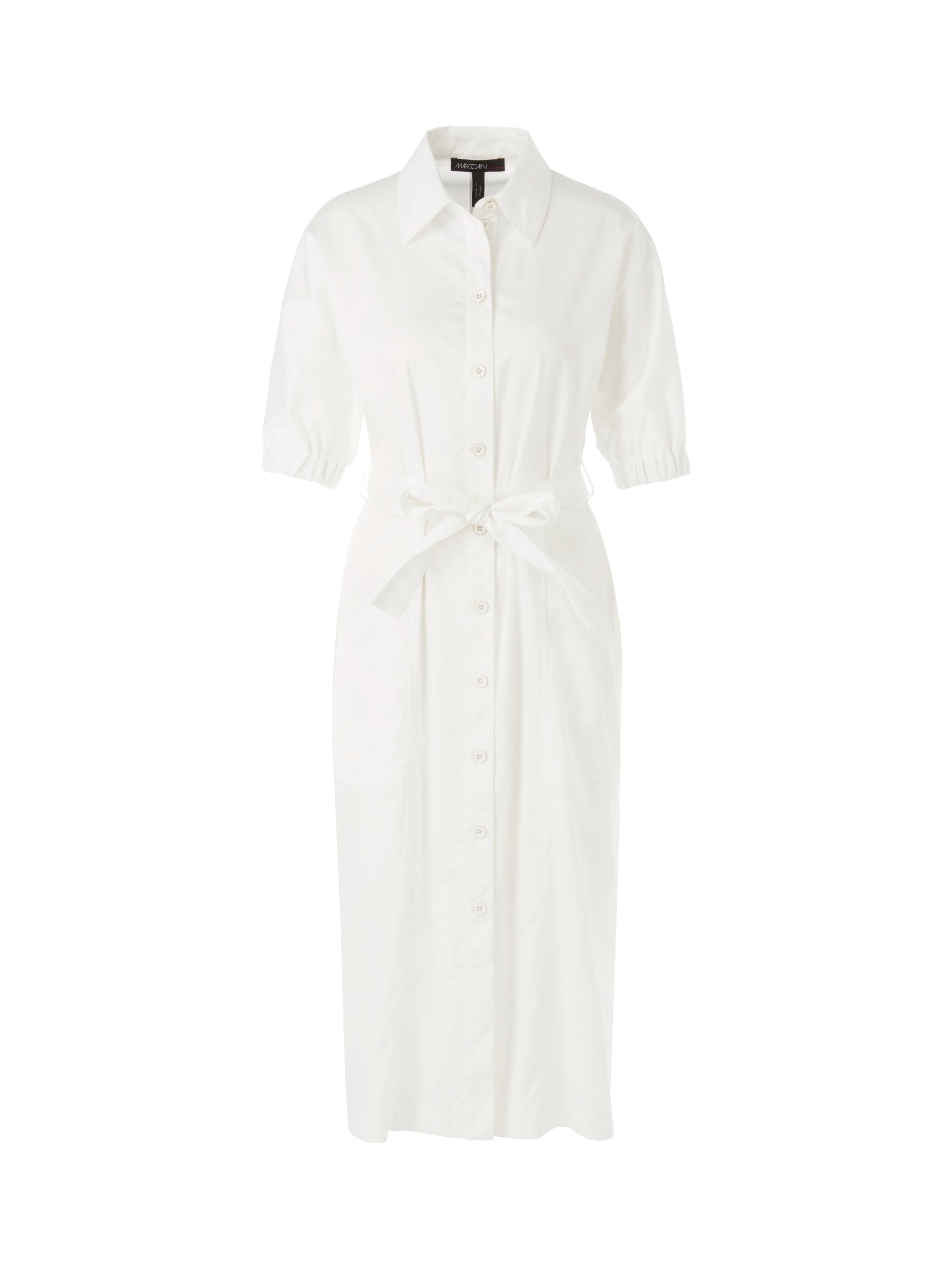 This shirt dress features set-in sleeves with elasticated cuffs and a relaxed silhouette. A tie belt creates a feminine silhouette. Large pockets emphasize the comfortable design. The dress has a full button front. Thanks to the fabric blend of lightweight cotton and elastane, this dress is ideal for hot summer days.