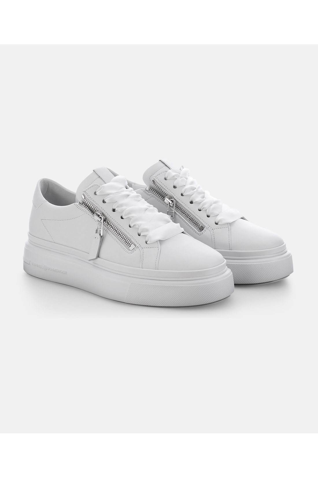 Der cleane Sneaker DIVE ist ein modernes Basic, welches in keinem Schuhschrank fehlen darf. Der sportive Sneaker aus feinem Kalbleder mit lässigen Ziernähten und seitlich eingearbeiteten Reißverschlüssen lässt sich zu nahezu jedem Outfit kombinieren. Die feinen Satinbänder sorgen für einen stilvollen Look. Die extraleichte Sohle bietet höchsten Tragekomfort. Die Innensohle kann herausgenommen werden.