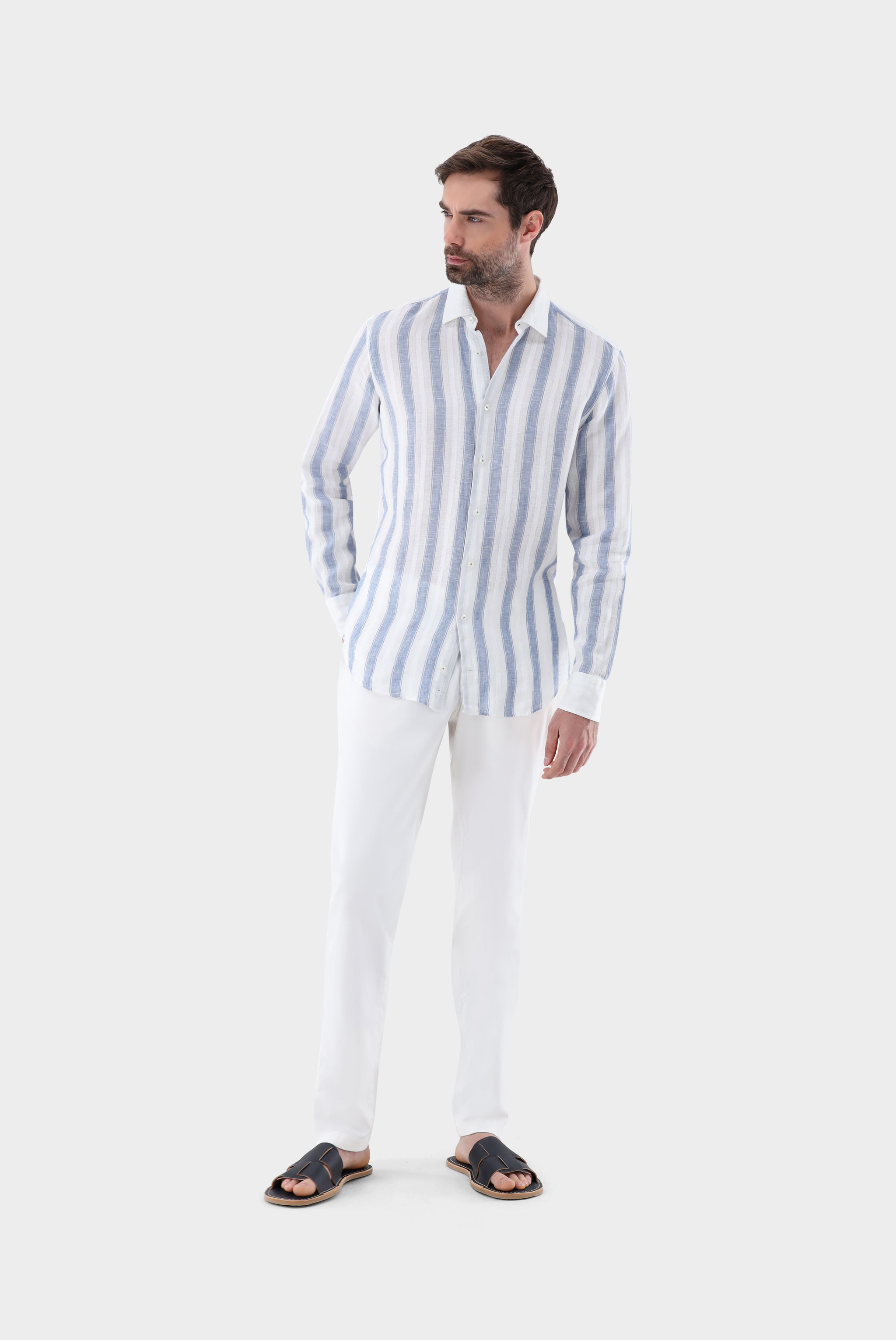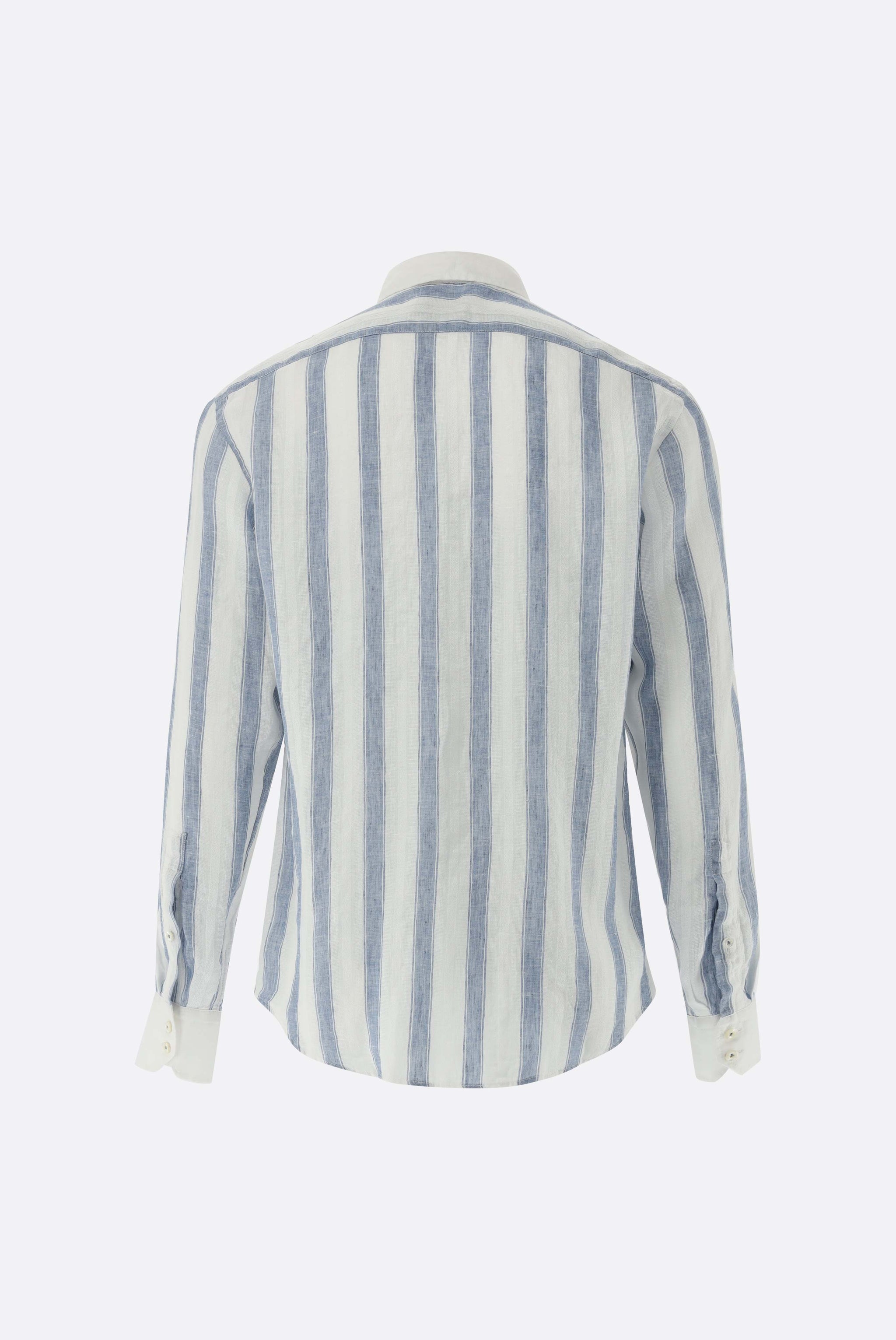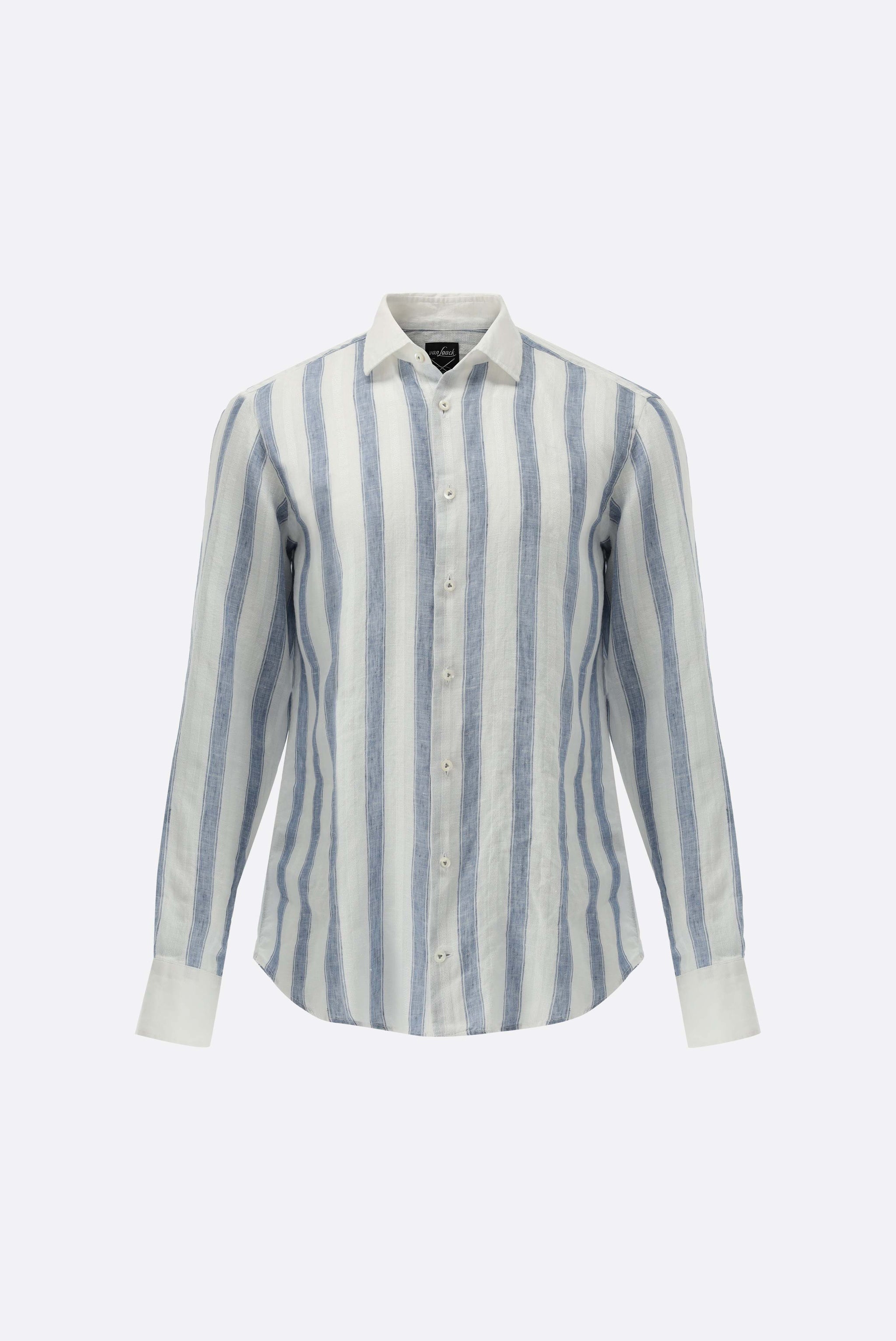 Leinenhemd | gestreift mit weißem Kragen und Strukturmuster